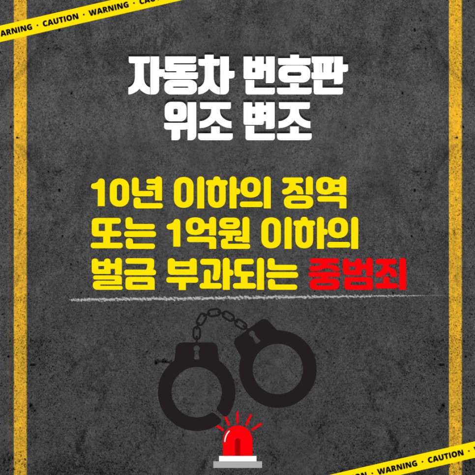더 큰 문제는 자동차 번호판을 고의로 위·변조하는 건데요, 이런 경우 10년 이하의 징역 또는 1억 원 이하의 벌금이 부과됩니다.