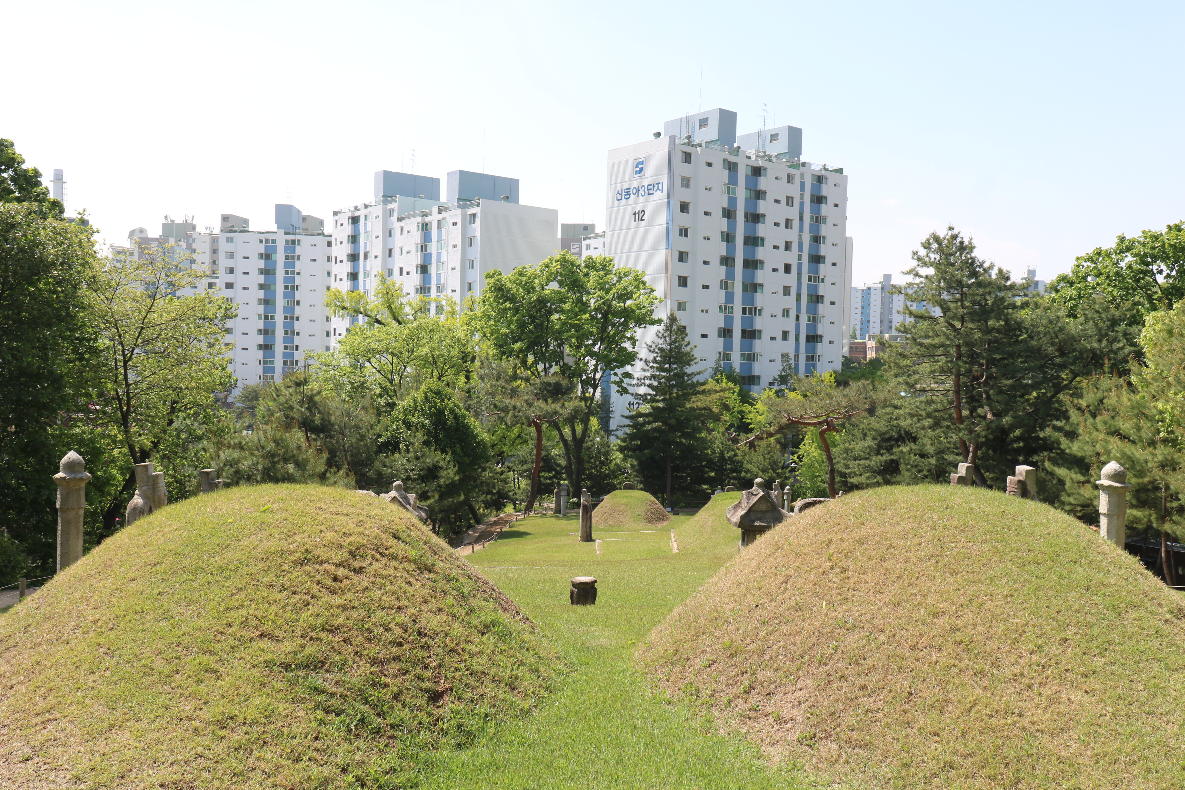 연산군묘 맨 꼭대기에서 보니 아파트숲이 보입니다. 시야가 가려 답답해 보입니다. 연산군이 폭정으로 왕위에서 물러나지 않았다면 이렇게 초라하게 누워있지는 않았을 겁니다.