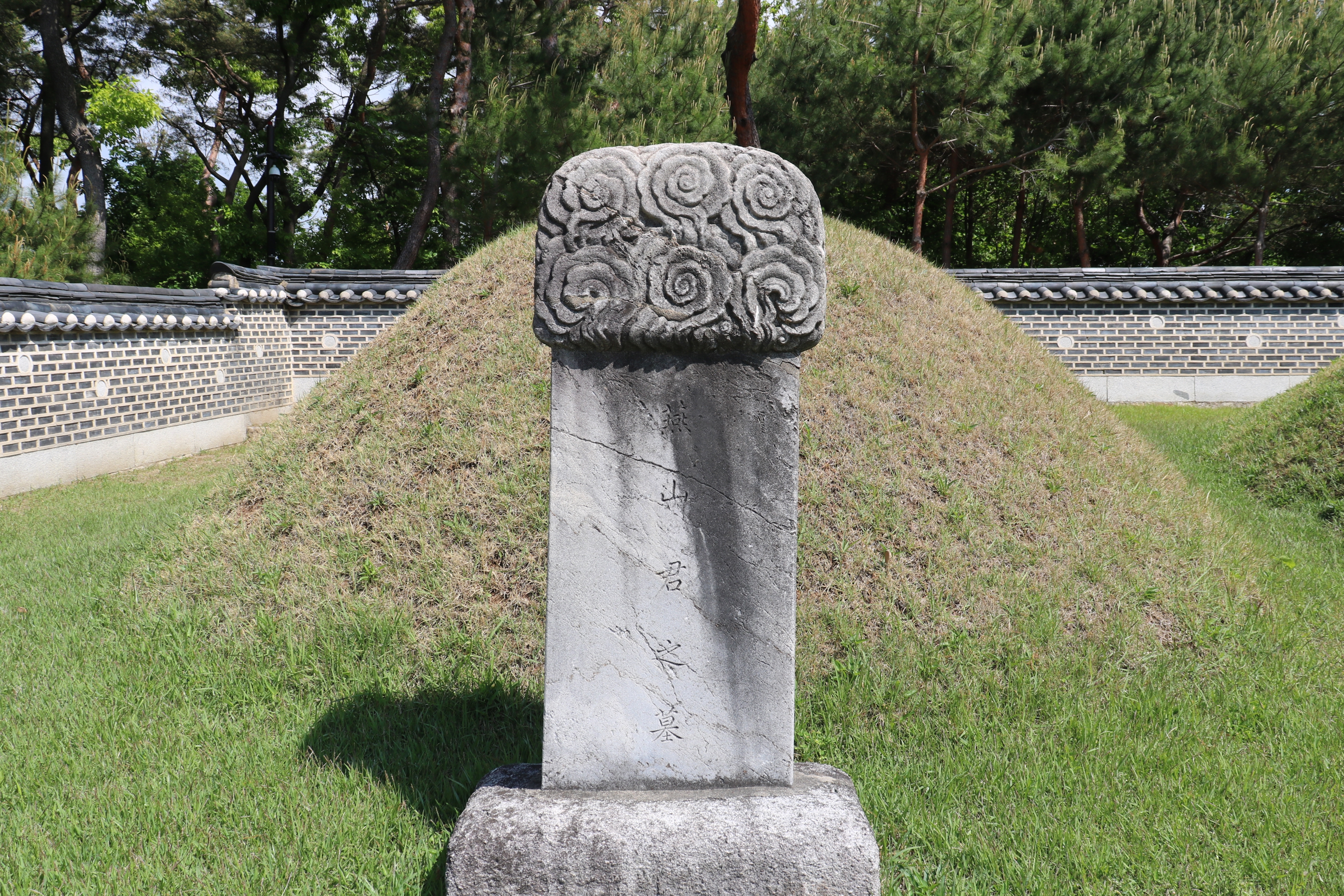 연산군의 묘 앞에는 '연산군지묘'(燕山君之墓) 라고 다섯 글자가 새겨진 묘비가 있습니다. 후면에는 '정덕 8년 2월 20일 장'(正德八年二月二十日葬)이라는 글자가 새겨져 있습니다. 연산군 묘에는 묘비(墓碑), 혼유석(魂遊石), 장명등(長明燈), 향로석(香爐石), 문석인(文石人), 재실(齋室)이 갖추어져 있습니다.