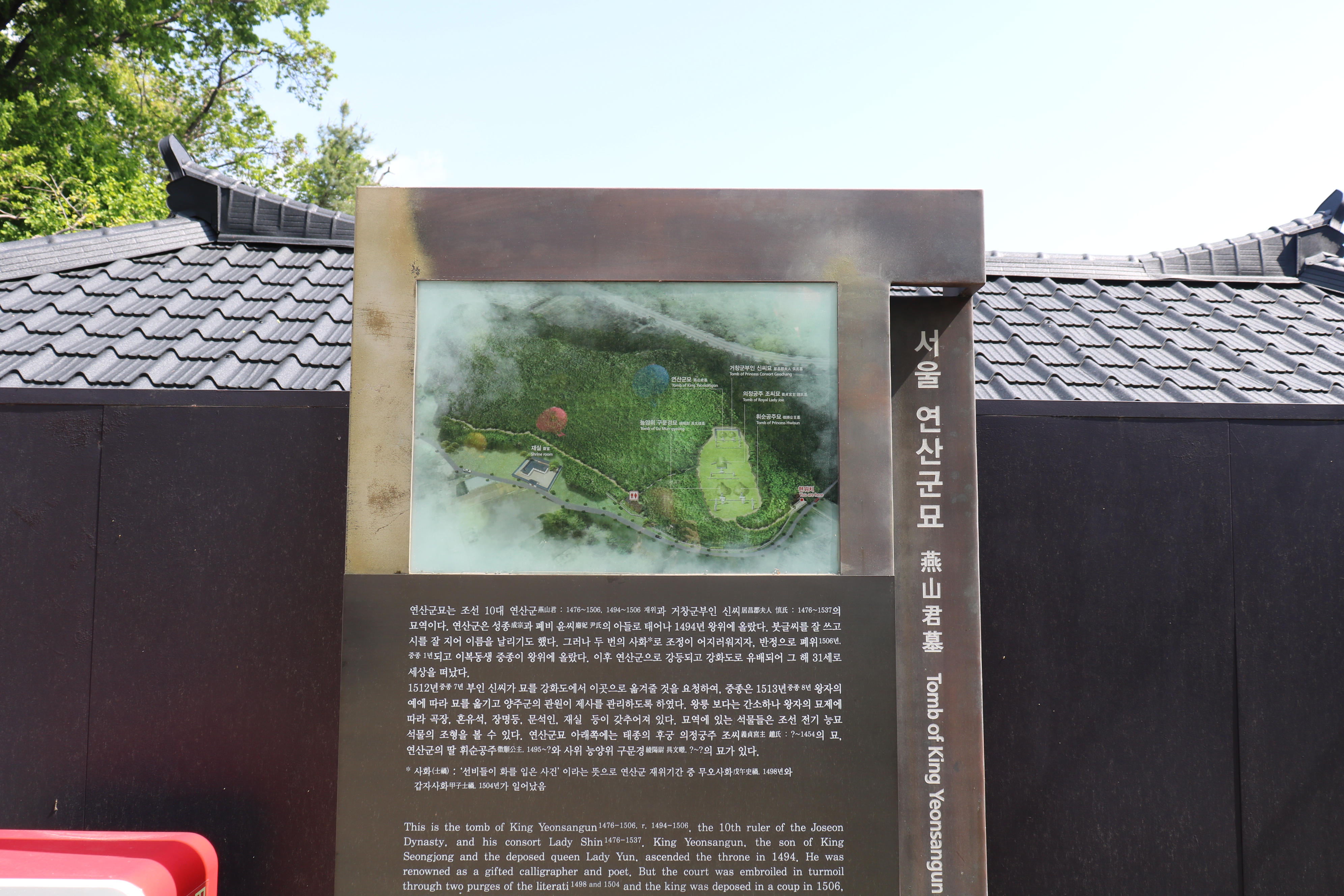 연산군은 조선의 왕이었지만, 왕위에서 쫓겨났기 때문에 다른 왕이나 왕후의 능과는 비교가 되지 않을 정도로 초라합니다. 제가 가본 왕릉에는 신성한 장소에 세우는 홍살문이 있는데요, 연산군 묘는 없습니다. 묘지 입구에 '사적 제362호 연산군 묘'라고 표지석이 있을 뿐 입니다. 이런 표지석이나 안내판이 없다면 일반인 묘로 착각할 정도입니다.