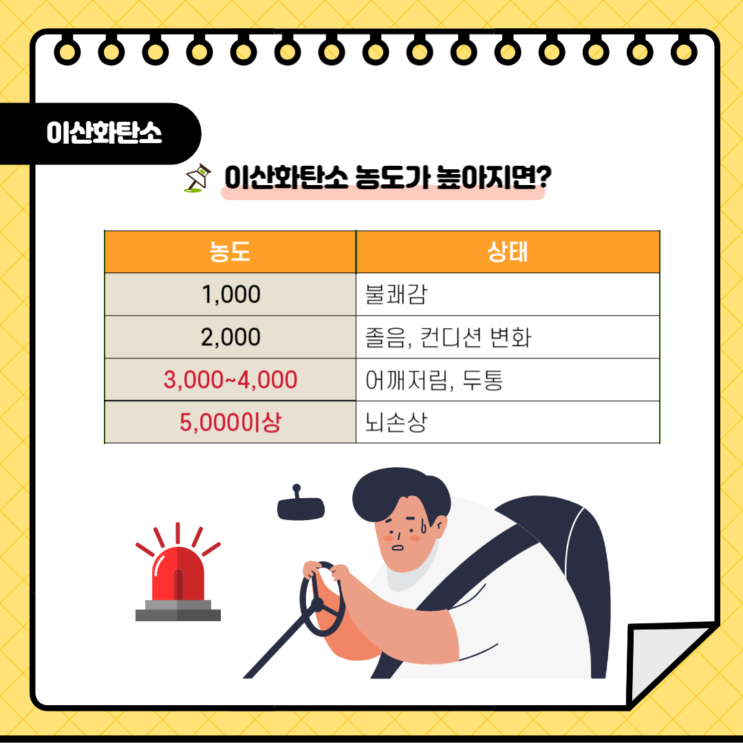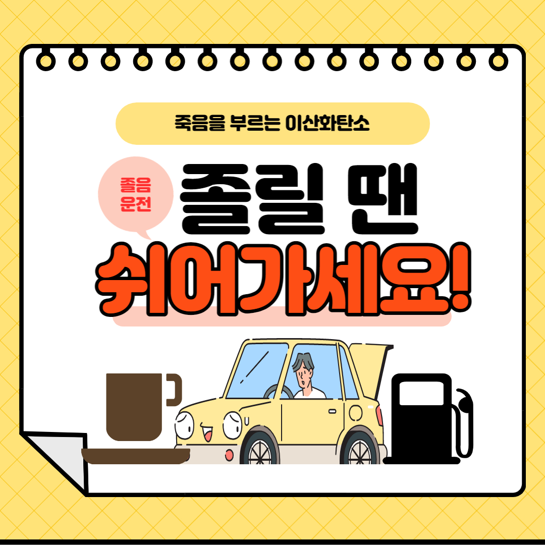 죽음을 부르는 차량 내 이산화탄소! 여름철 휴가 갈 때 장거리 운전 많이 하시잖아요. 환기를 자주 시키고요. 많이 졸릴 때는 쉬어가는 것이 사고를 예방하는 최선의 방법입니다. 휴게소에서는 가벼운 스트레칭도 하고요. 졸음을 억지로 참고 가다가 대형 사고로 목숨을 잃을 수 있다는 것을 명심하세요.