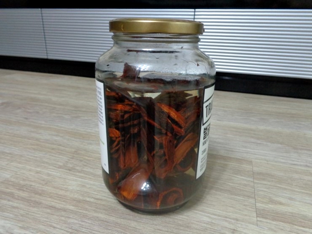 유리병에 계피가 1/2 가량