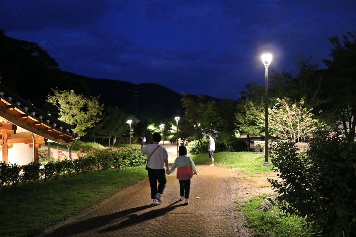 제가 평일 저녁 8시 넘어서 갔는데요, 가족 단위로 산책 나온 사람들이 많았습니다. 남한산성 한옥마을을 주말이나 휴일은 밤에도 인파로 붐비는데요, 그래서 평일 저녁에 가면 좋습니다.