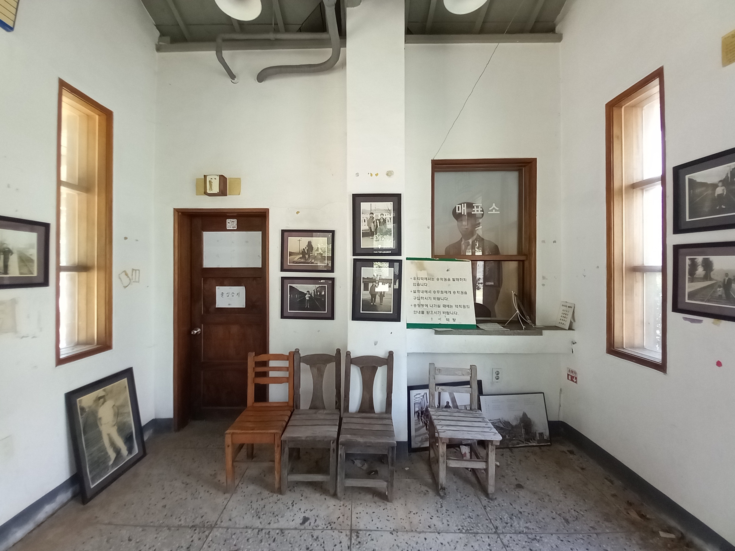 능내역사 안으로 들어가 보면, 사진이 걸려 있습니다. '남양주씨 이야기'란 컨셉으로 능내리에서 나고 자란 마을 이장님을 이야기 모델로 삼아 능내역의 역사와 추억을 담은 사진이 전시되어 있어 능내역을 이용했던 사람들의 향수를 불러일으키는 공간이 됐습니다.