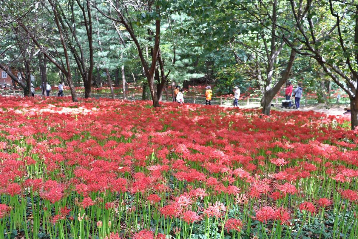 분당중앙공원의 명소 중 하나인 꽃무릇 거리입니다. 매년 9월이면 수십만 그루의 꽃무릇이 피어 탄성을 자아내게 하는 곳입니다. 지난 9월에 찍었던 만개한 꽃무릇을 소개합니다. 내년 9월에 꽃무릇 보러 오세요.