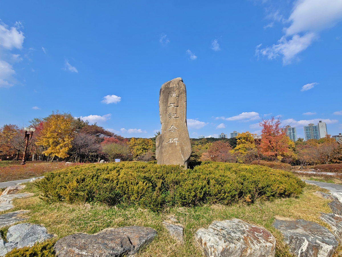 먼저 분당중앙공원의 준공기념비입니다. 준공기념비 뒤에 건립 취지문이 쓰여 있습니다. 1991년 경기도에서 분당, 일산, 산본, 평촌 등 1기 신도기가 만들어졌는데요, 그중 분당중앙공원은 성남 시민뿐만 아니라 주변 경기도민이 자주 찾는 명소입니다. 경관이 뛰어나 영화 및 TV, CF 촬영지로도 명성이 나 있습니다.