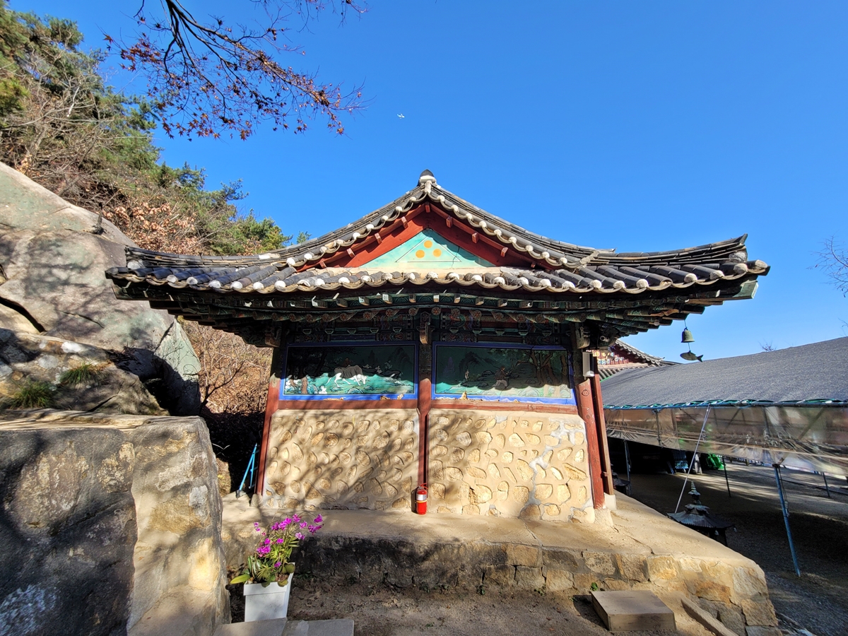산신각 우측에 커다란 바위가 있고요, 그 바위 아래 아주 작은 가건물이 있습니다. 이곳도 기도하는 터 같은데요, 안을 보니 독성이 모셔져 있네요. 제가 올라가기 전에 어느 아주머니가 사과를 놓고 정성껏 기도하셨습니다. 아들이 수능을 봤나요. 암튼 아주머니의 기도대로 꼭 소원이 이뤄지길 바랍니다.
