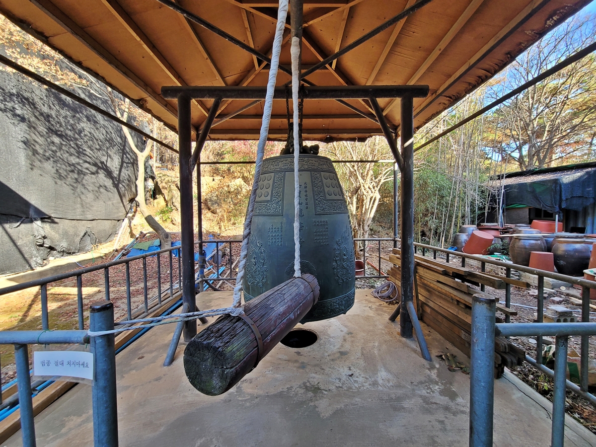 대자비전 우측으로 가면 용화사 범종이 있습니다. 봉녕사 등 다른 사찰을 가보면, 범종은 범종각을 만들어 그 안에 두잖아요. 그런데 용화사는 범종을 보관하는 전각이 없습니다. 그냥 대자비전 우측 공간에 세워져 있는데요, 전각을 세울만한 돈이 없어서 그런가요. 범종각을 만들어 범종을 보관했으면 좋겠네요.