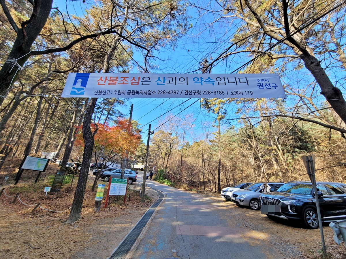 칠보산 주차장은 따로 있는 게 아니고 도로 좌·우측 빈 곳에 세우면 됩니다. 주말에는 주차공간이 부족할 정도로 칠보산을 오르는 시민이 많습니다.