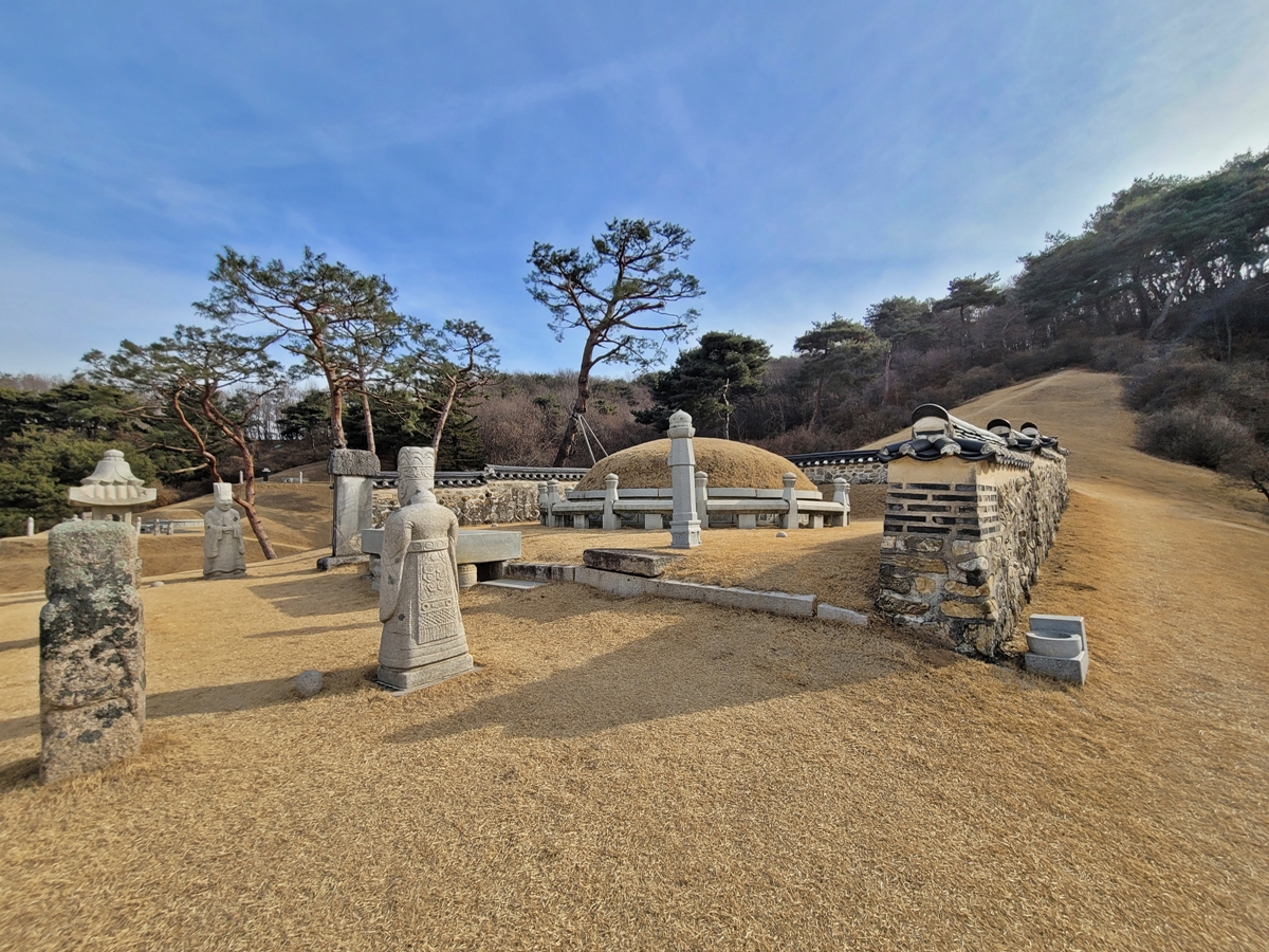 오늘은 이석형 묘는 생략하고 정몽주 묘만 올라가 봤습니다. 정몽주(1337~1392) 묘소는 경기도 기념물 제1호입니다. 포은 선생의 묘소는 경기도 용인시 처인구 모현면 문수산 안자락 해발 145m의 나지막하고 양지바른 언덕 위에 자리 잡고 있습니다. 왕릉 부럽지 않은 거대한 묘소입니다. 그리고 왕릉에만 보이던 곡장(묘 주위 담장)도 있습니다.