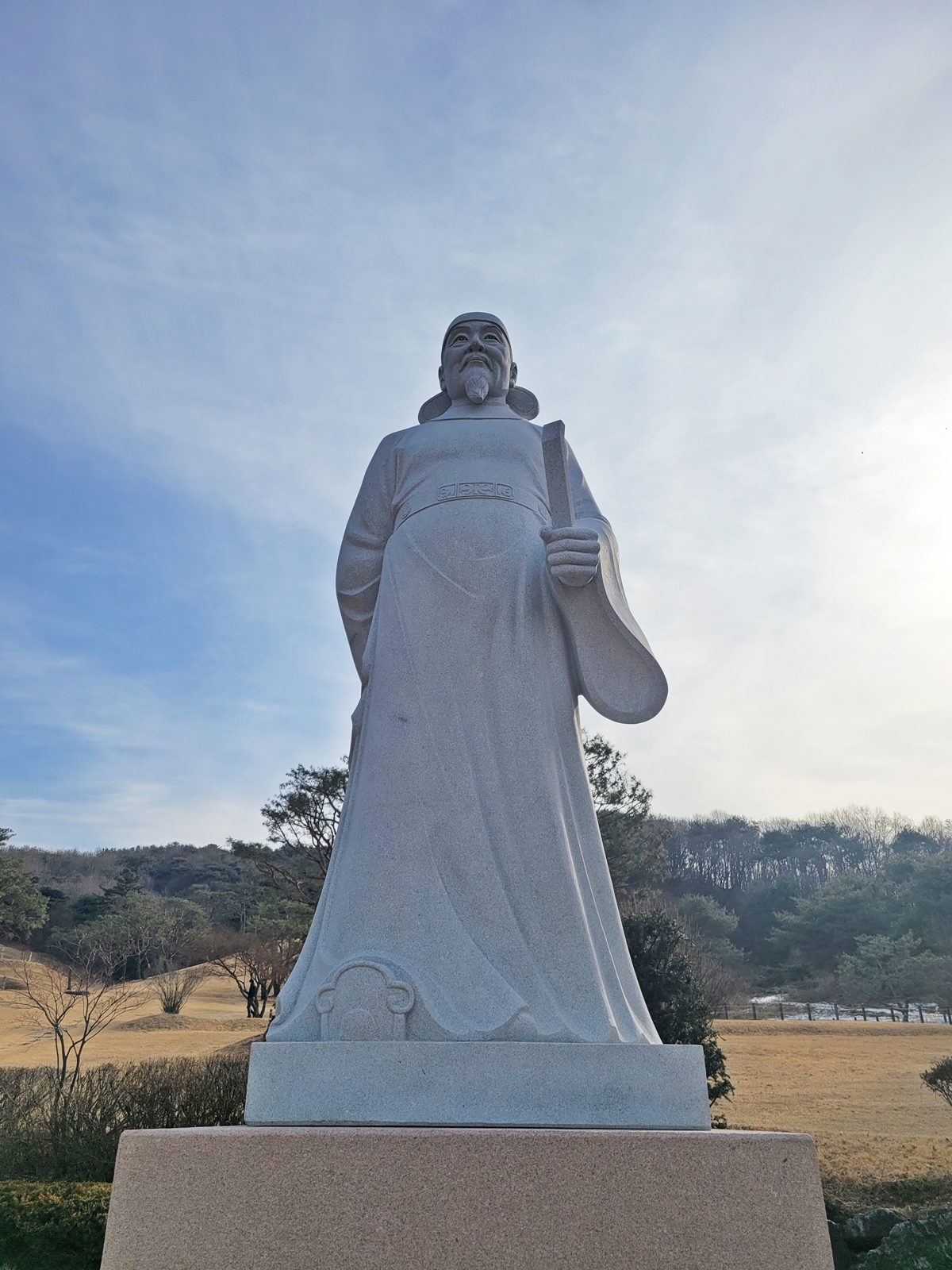 오랜만에 가보니 홍살문 옆에 전에 없던 정몽주 동상이 생겼습니다. 크기도 아주 큽니다. 묘역 앞에서 용인시 처인구 모현면을 지긋이 바라보고 있습니다. 50~60대는 정몽주를 모르는 사람이 없을 텐데요, 이렇게 동상으로 얼굴을 보니 반갑네요.