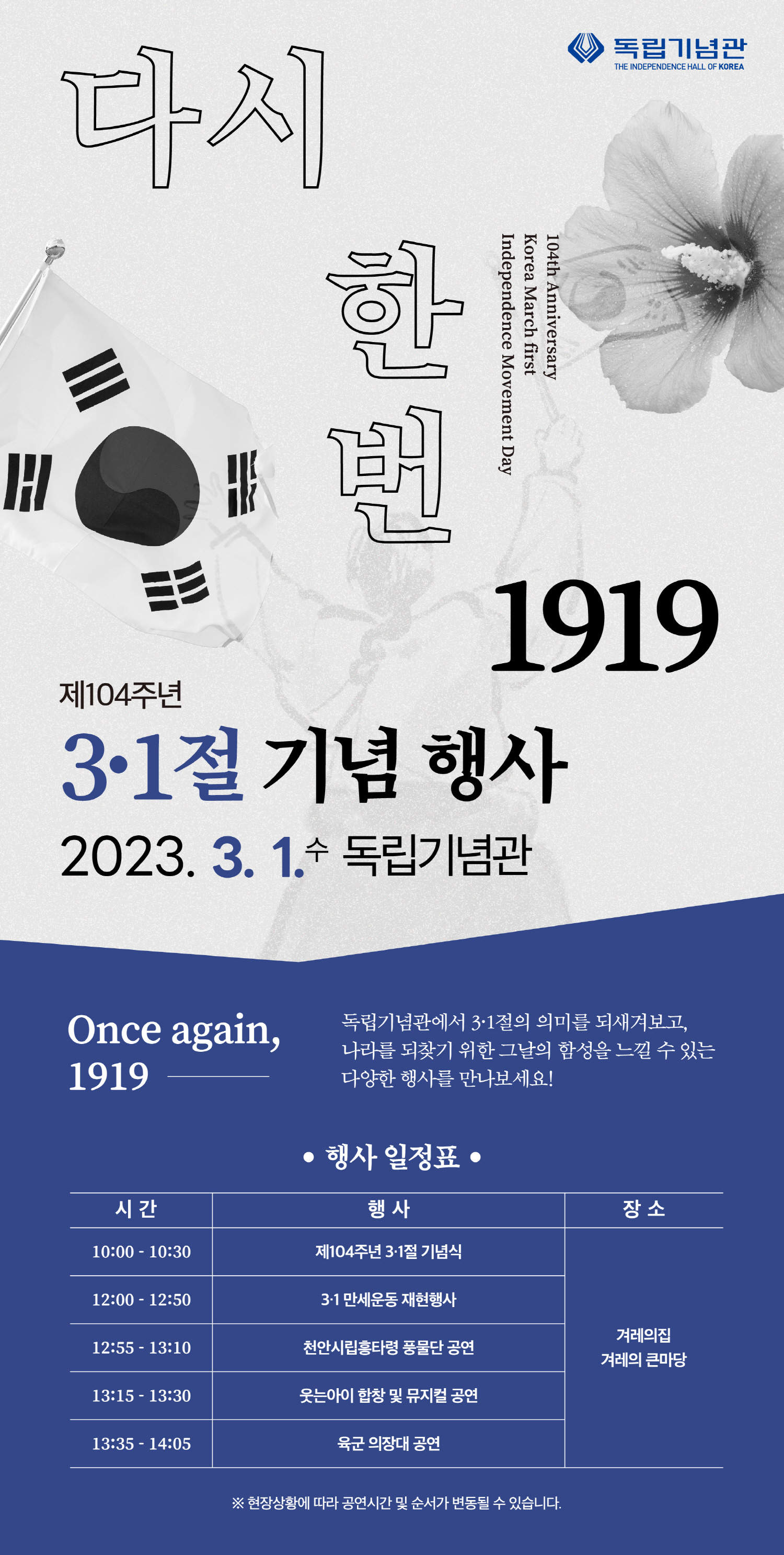 독립기념관은 3월 1일(수), 제104주년 삼일절 기념행사를 개최한다.