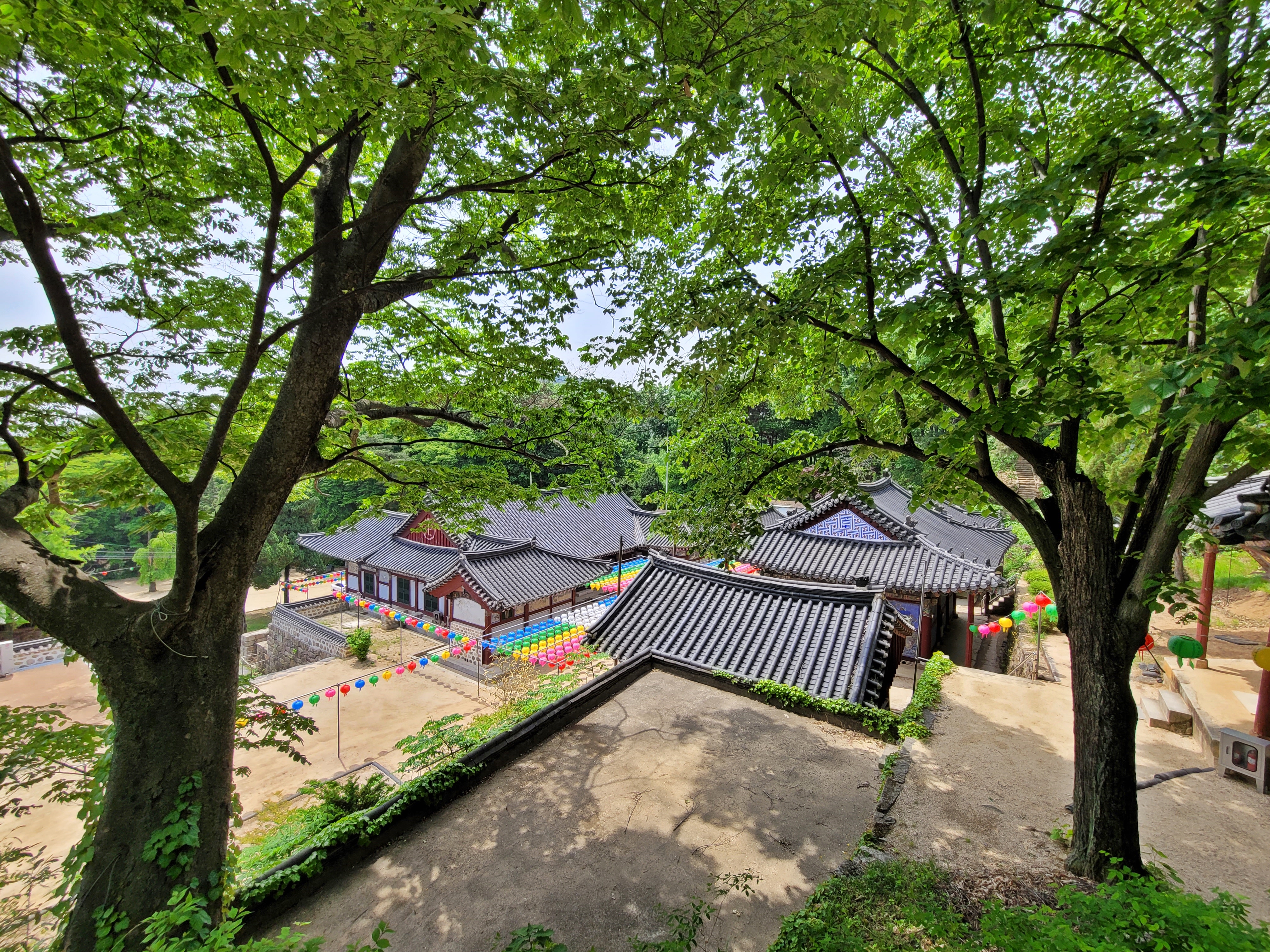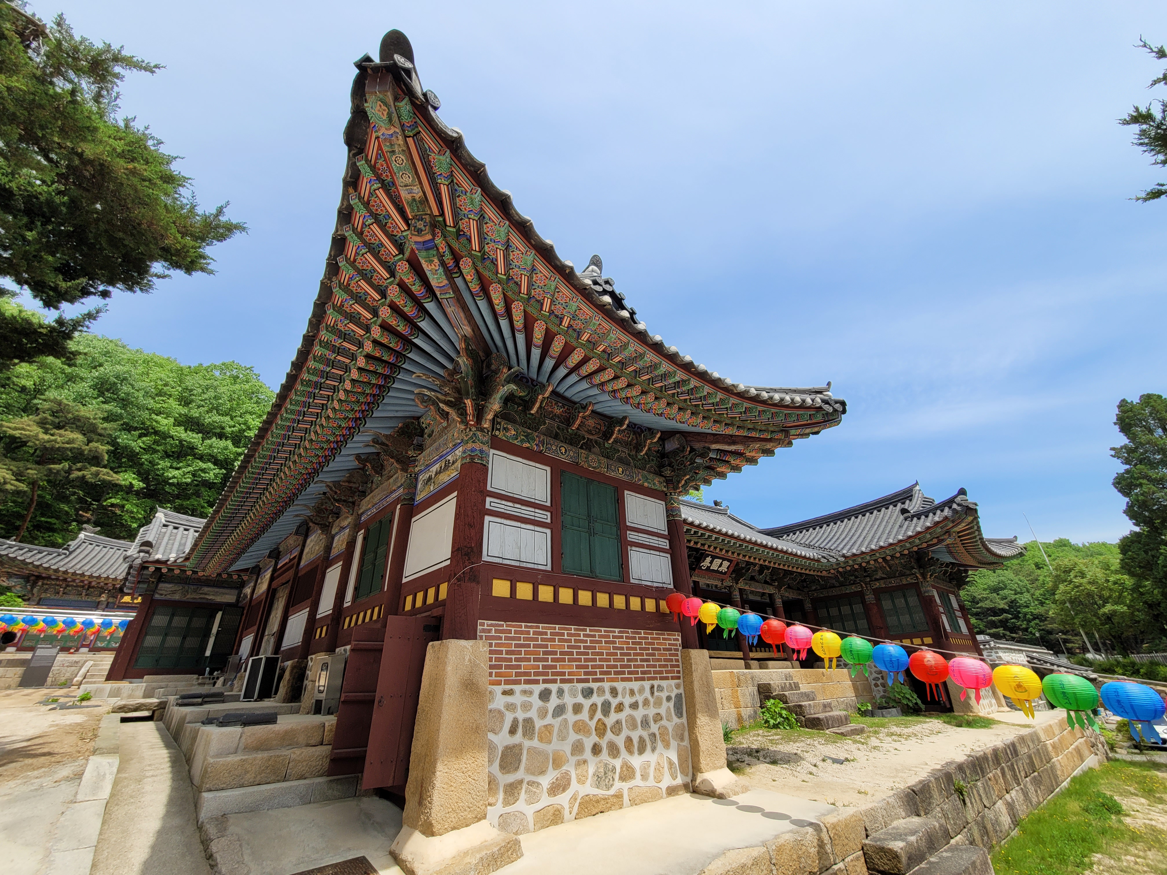 부처님 오신 날을 앞두고 있어서 일주문부터 흥국사까지 가는 길 우측으로 연등이 걸려있습니다. 성하의 계절로 들어서며 초록 옷으로 갈아입은 나무와 연등이 묘하게 조화를 이루며 멋진 산사의 풍경을 보여줍니다.
