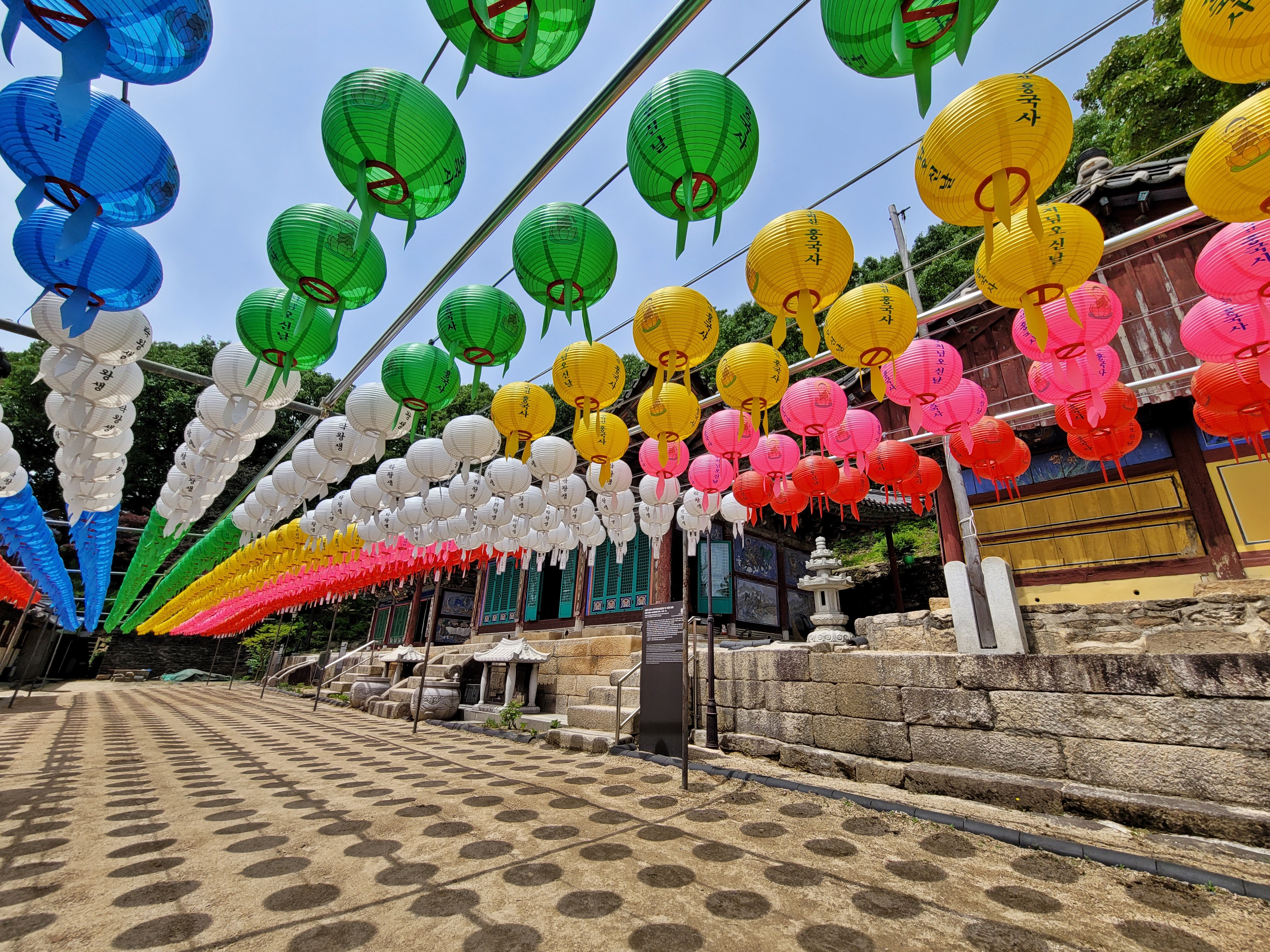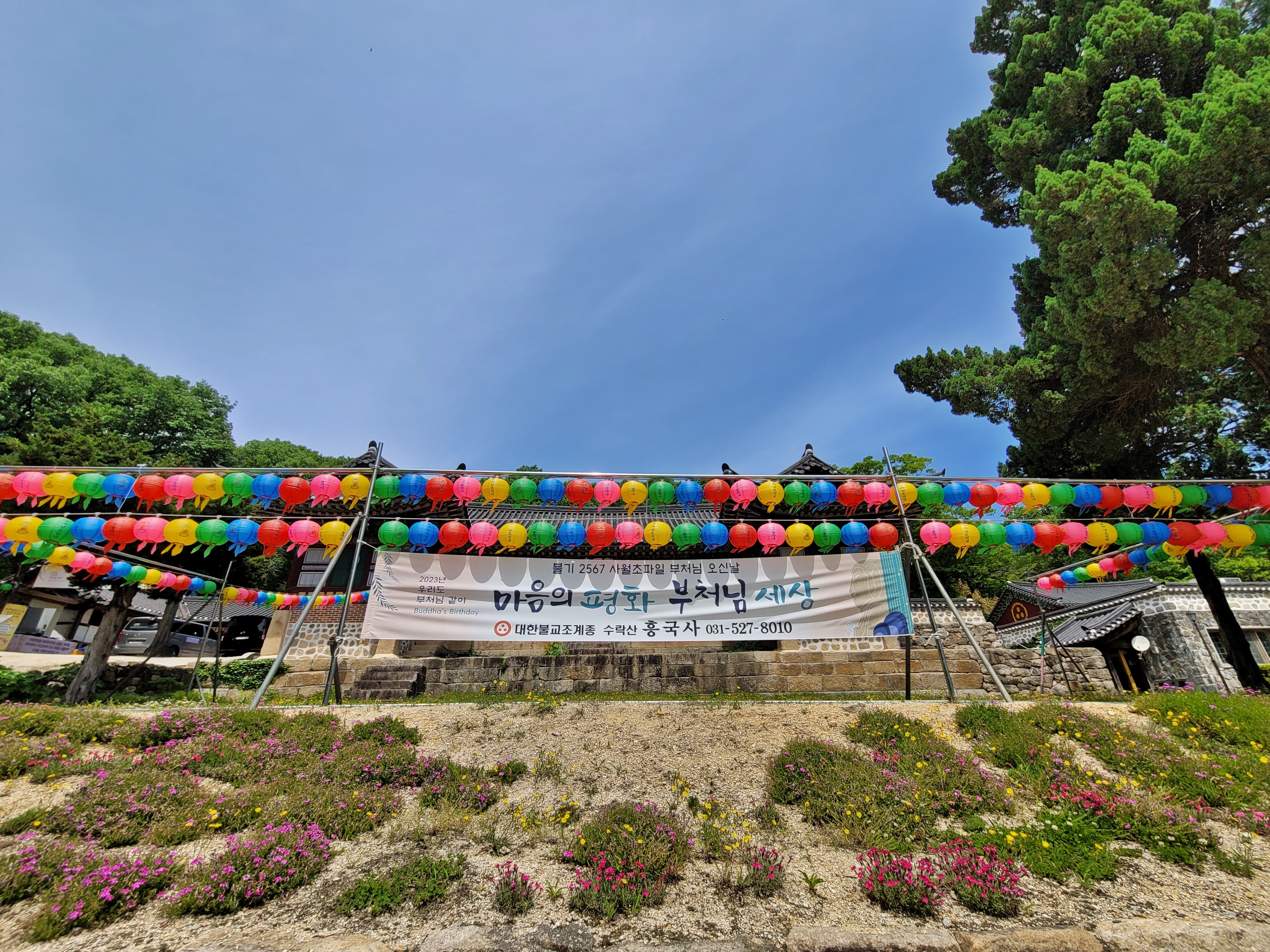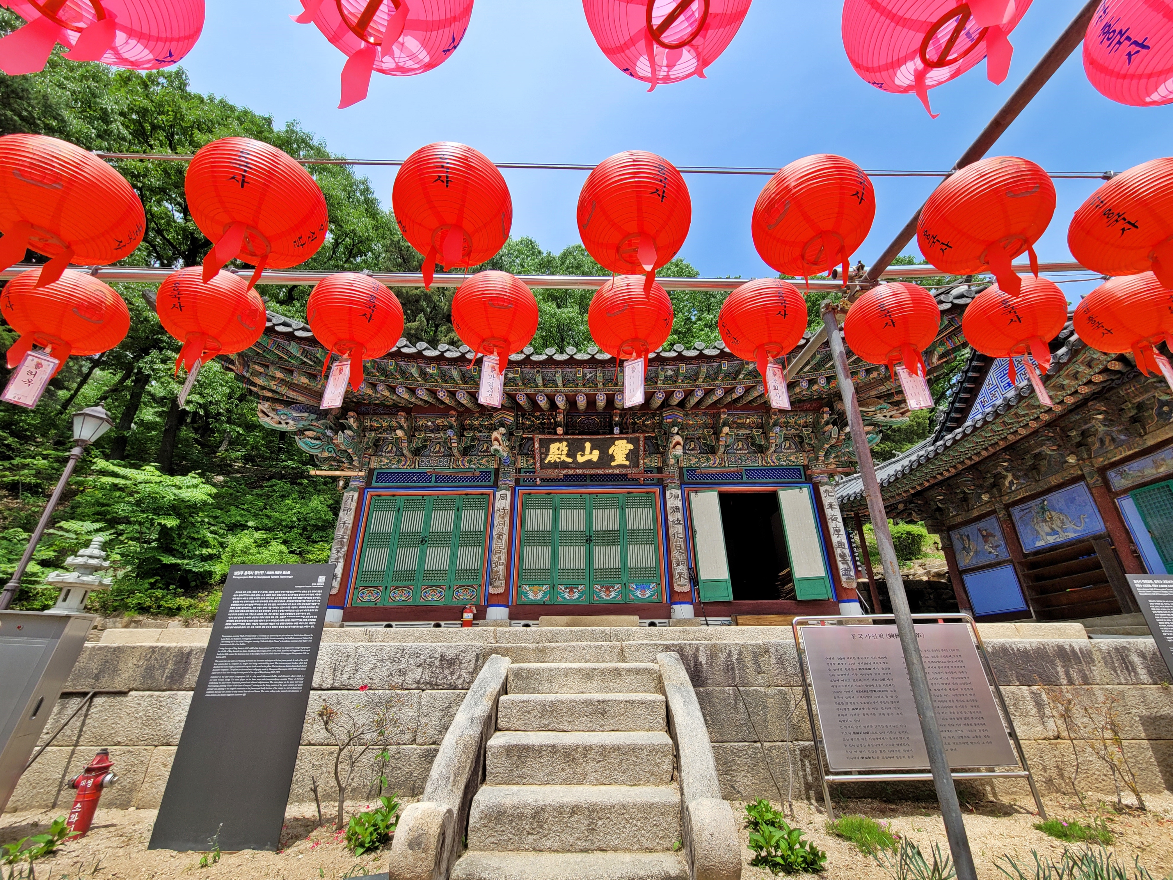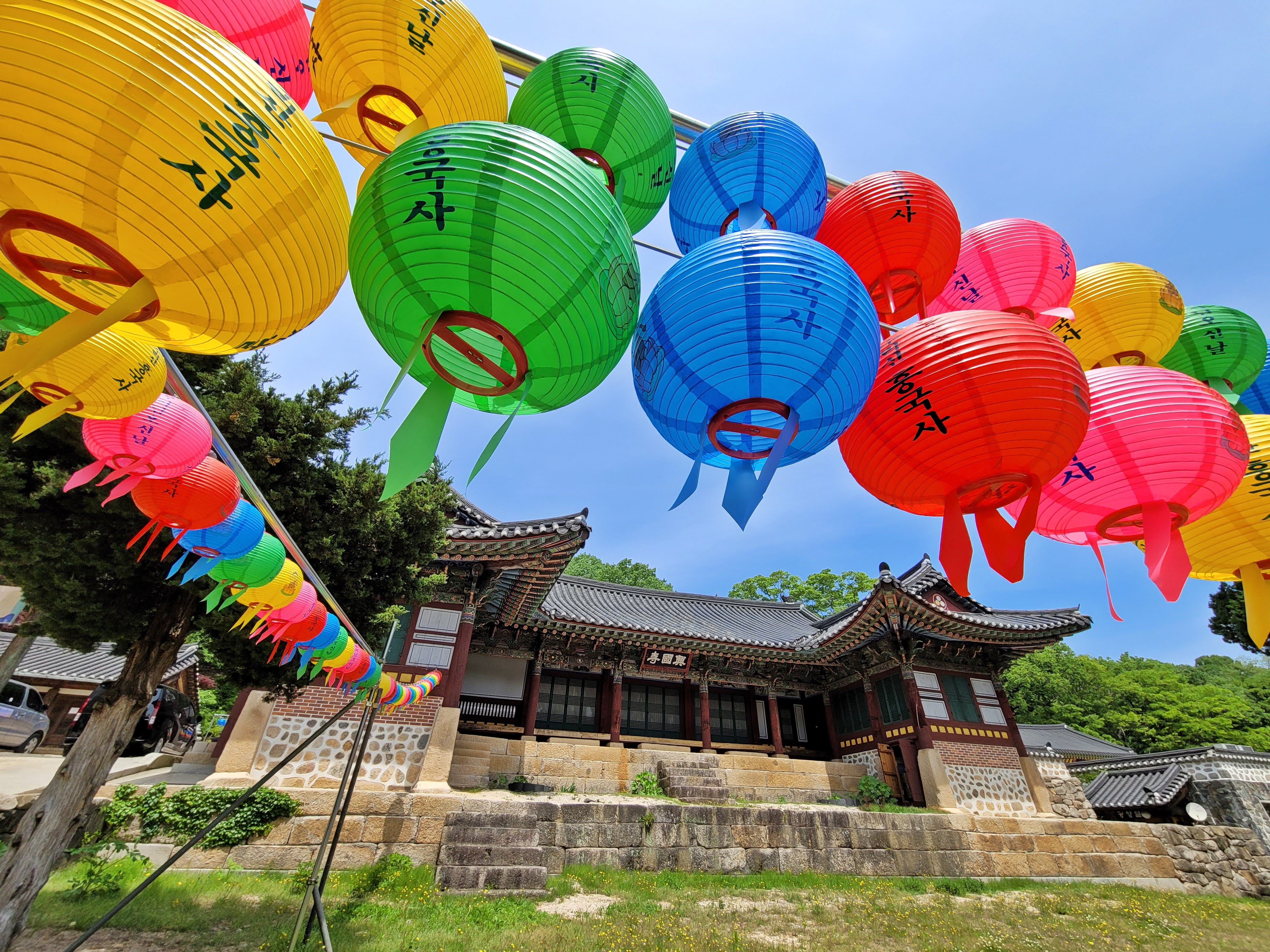 흥국사에 갔던 날 경내에 오색 연등이 화려합니다. 사찰은 불자가 아니라도 누구라도 방문할 수 있습니다. 산속 깊은 곳의 신록을 보며 일상에 지친 몸과 마음을 내려놓으며 사찰에서 여러분 가정의 안녕을 비는 건 어떨까요?