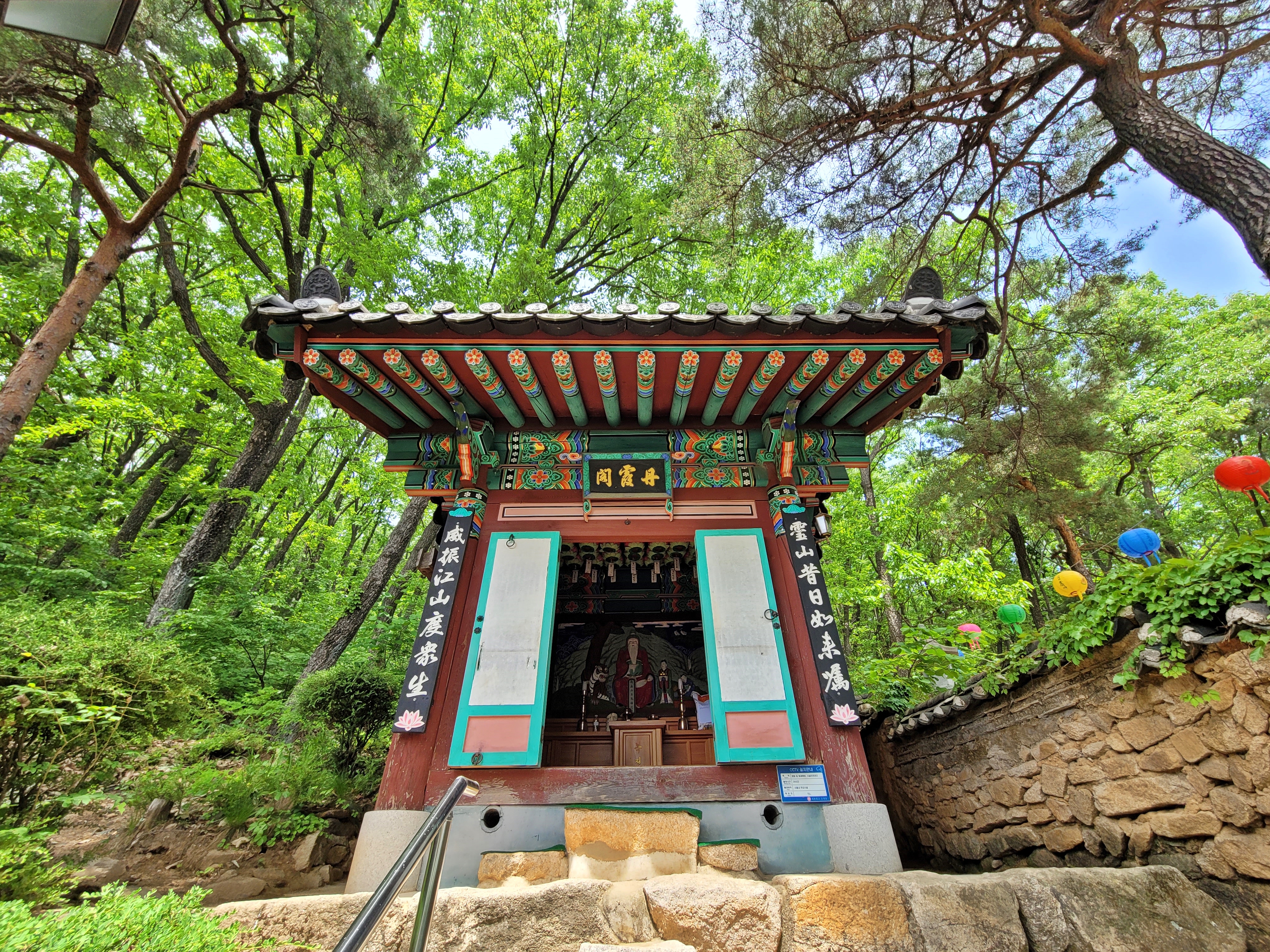 대웅보전 뒤에는 독성각이 있습니다. 독성(獨聖)은 이름 그대로 홀로 수행하는 성인을 말하는데요, 안에는 머리가 벗어지고 수염이 하얀 독성이 도를 닦고 있습니다.