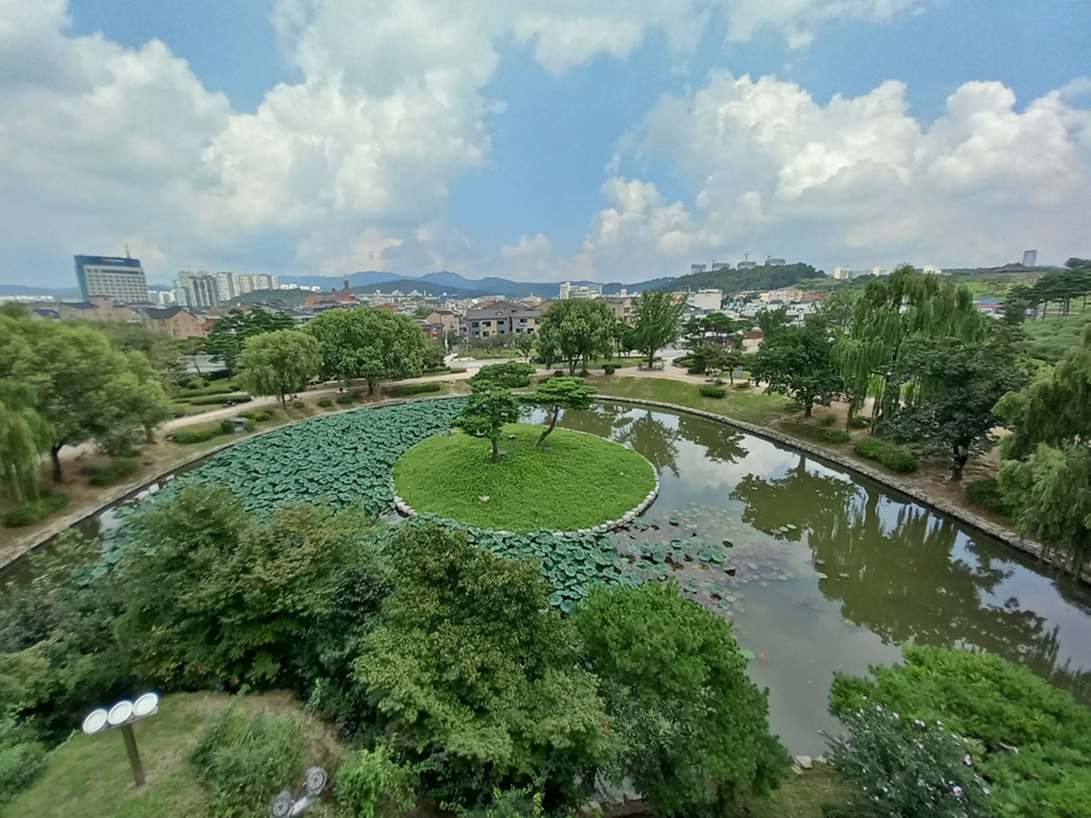 아, 여기서 이러시면 될까요? 안 될까요? 물론 됩니다. 아직 늦더위가 가시지 않았는데요, 용연 옆 나무 그늘에 돗자리를 펴고 세상에서 가장 편한 자세로 쉬고 있습니다. 누워서 하늘을 보면 나무 사이로 햇살이 비추어 그 모습 또한 멋지죠.