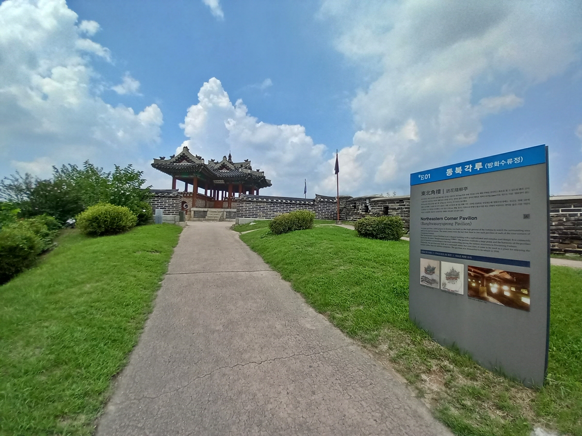 유네스코 세계문화유산에 빛나는 수원화성 중 방화수류정은 단연 으뜸 풍경을 자랑합니다. 지금은 관광지지만요, 정조 시대 이곳은 군사를 지휘하는 지휘소였습니다. 수원화성 북문인 장안문과 동문인 창룡문 사이에 있어서 동북각루(東北角樓)로 불렸습니다. 수원화성 각루는 총 4개인데요, 그중 가장 예쁜 곳이 방화수류정입니다.