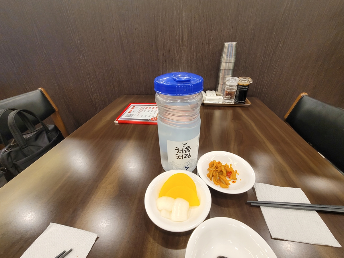 저는 아내와 함께 갔는데요, 등심 탕수육과 짜장면, 짬뽕을 시켰습니다. 기본 반찬은 단무지와 무절임 등 단출한데요, 추가 반찬 셀프 코너가 있어 얼마든지 드실 수 있습니다.
