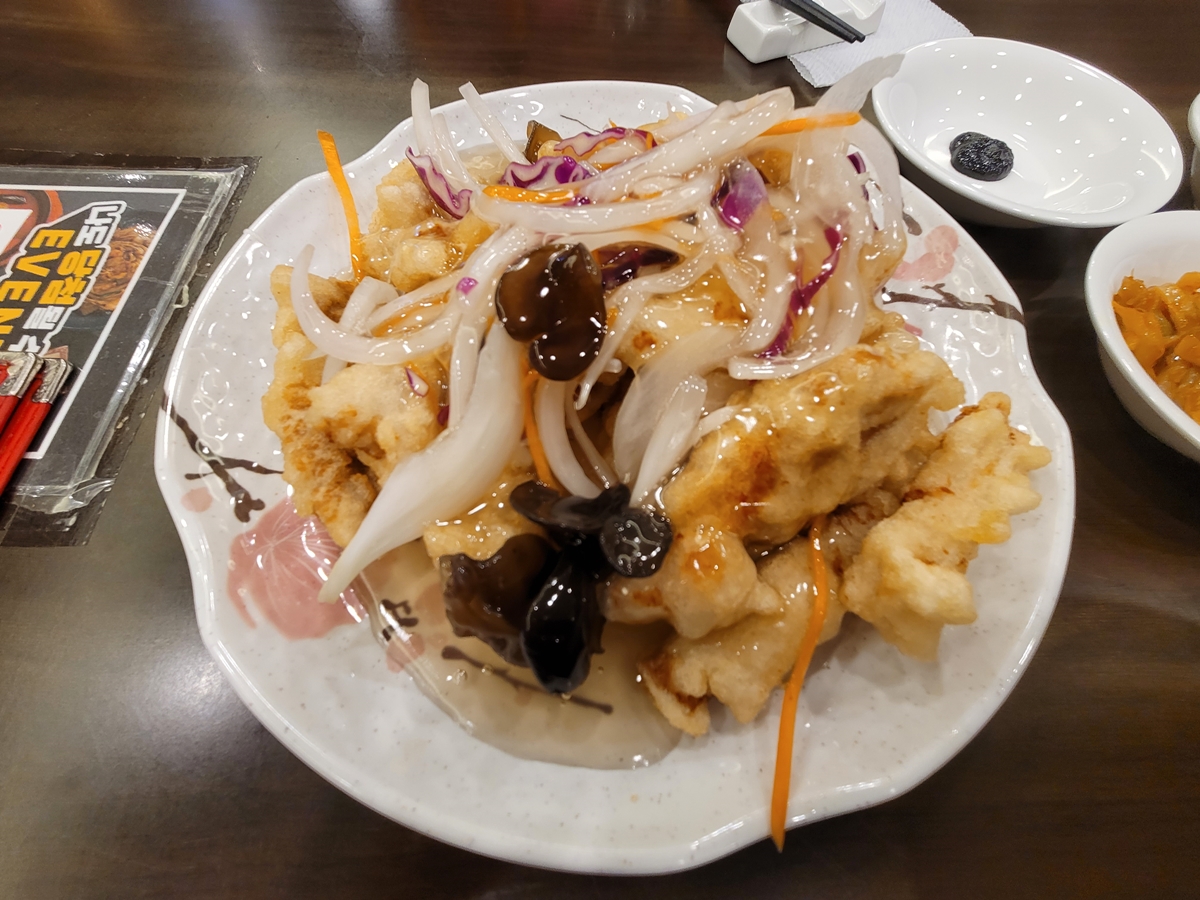 약 15분 기다리니 먼저 등심 탕수육이 나왔습니다. 부먹이냐, 찍먹이냐? 탕수육 시킬 때 고민 많이 하시죠. 저는 부먹으로 시켰습니다. 바삭바삭한 탕수육을 소스와 함께 먹으니 식감도 좋고 맛있었습니다. 할인 기간 중 1만 2천 원입니다.