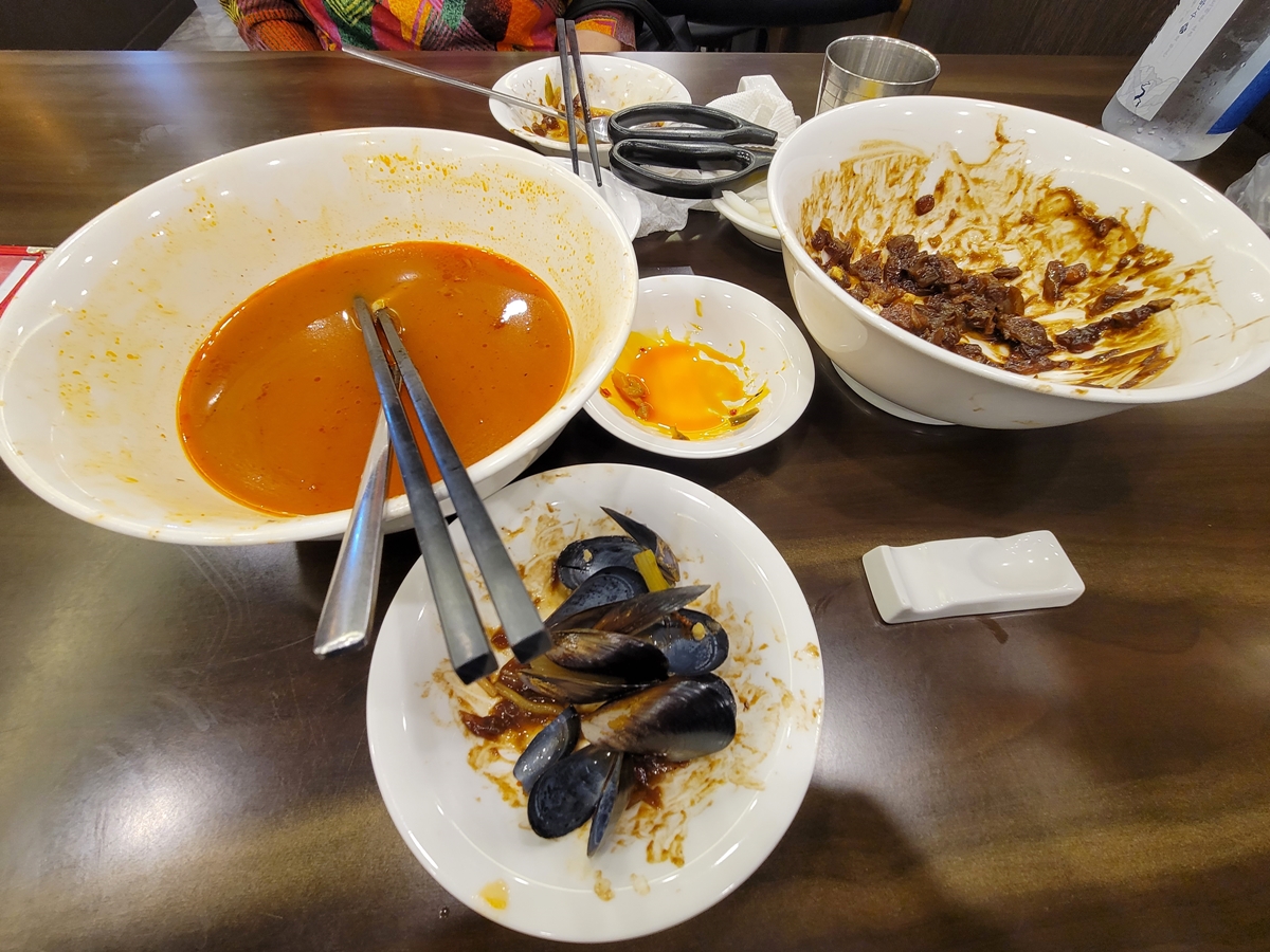 면도 꼬들꼬들한데요, 낙지 등 해물과 면을 함께 먹으면 입이 호강하는 느낌입니다. 아내와 짜장면을 먹은 후 짬뽕을 함께 먹으니 입이 개운하면서도 조금 매웠습니다. 맵지만 자꾸 국물이 땅기는 그런 맛입니다.