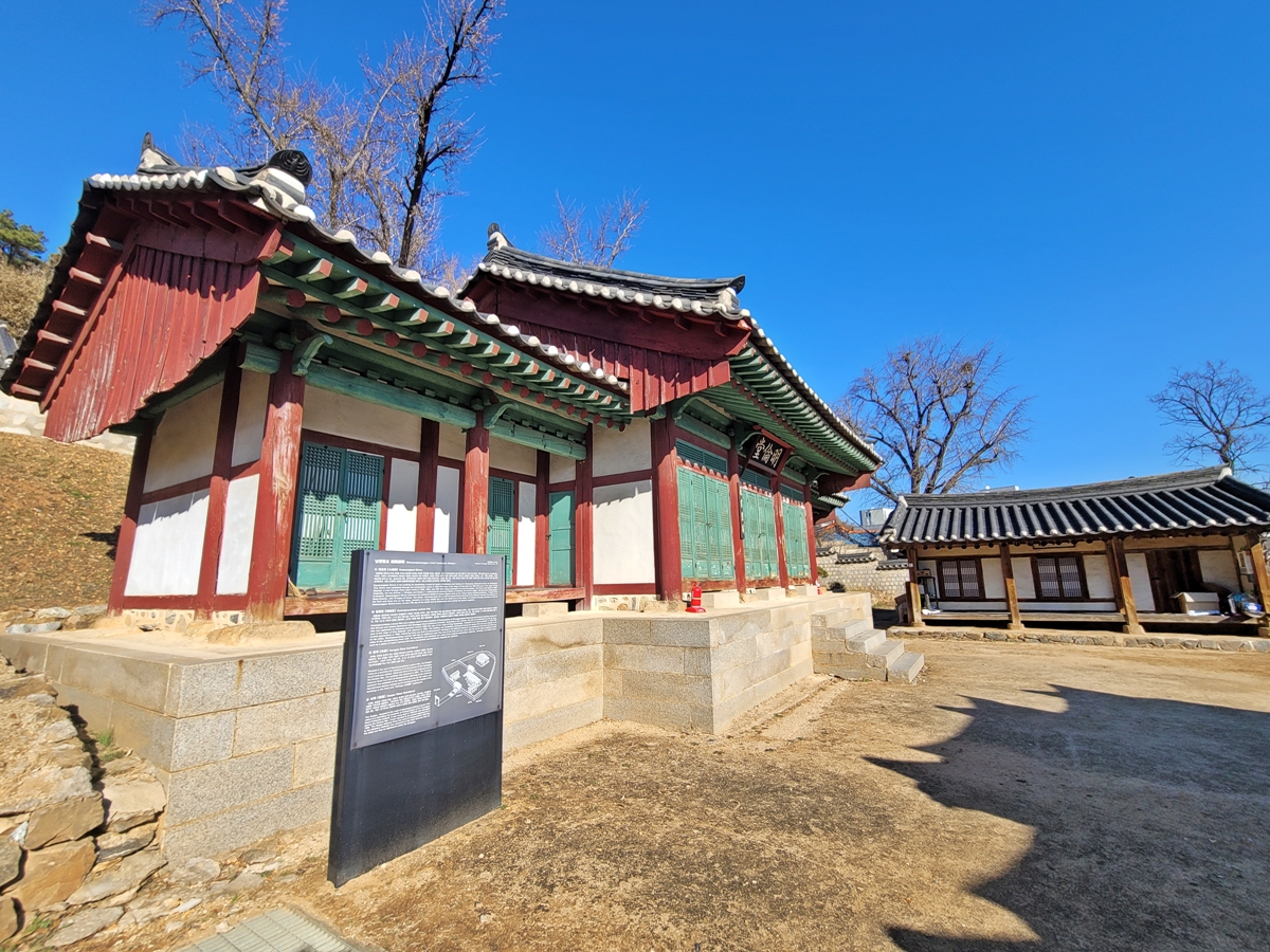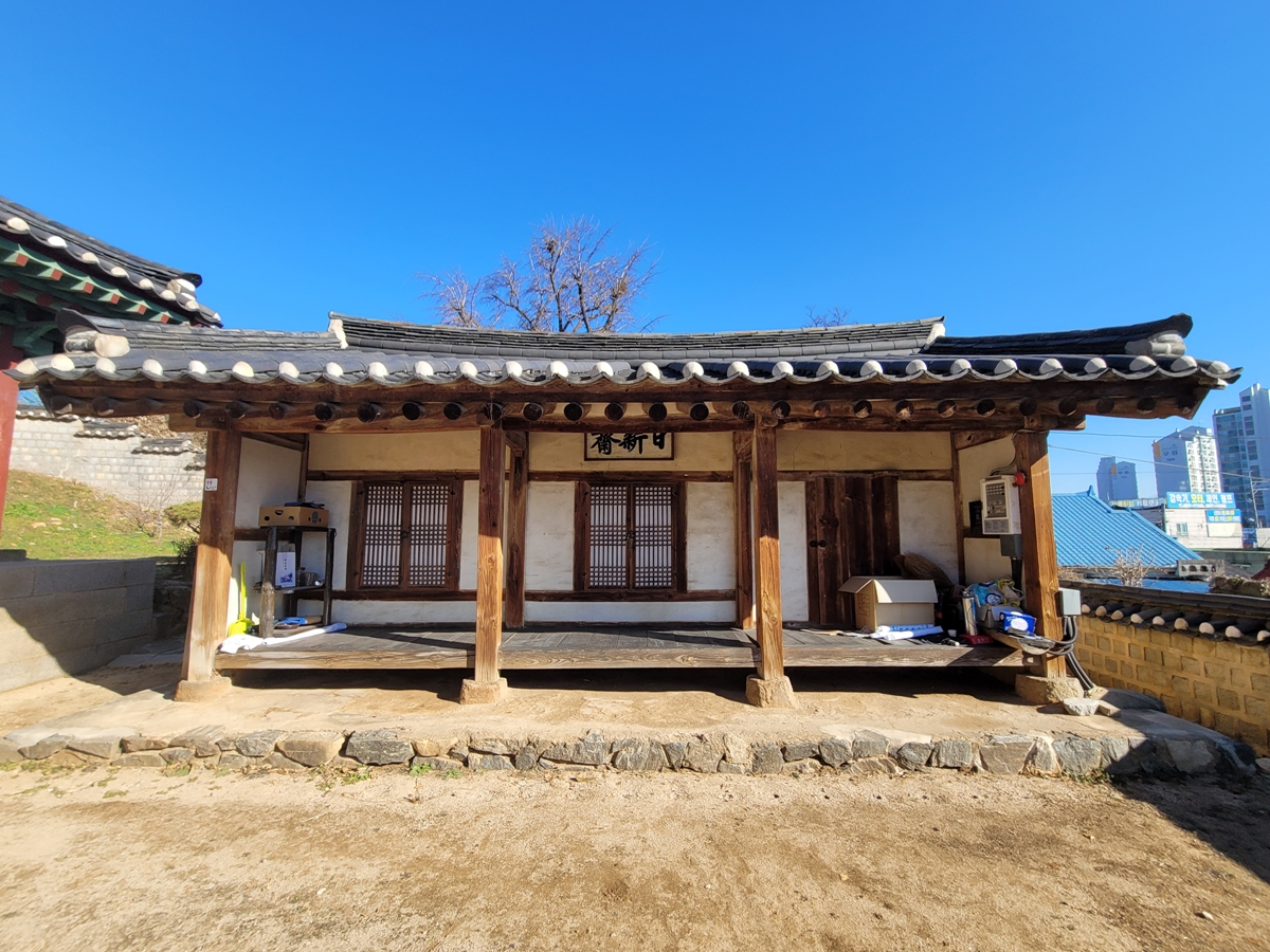 명륜당 좌·우측으로는 동재(東齋)와 서재(西齋)가 있습니다. 보통 명륜당을 중심으로 좌우 대칭을 이루고 있습니다. 이게 뭐하던 건물인지 아시나요? 학생들의 기숙사로 사용되었던 건물입니다. 건물 규모는 정면 3칸, 측면 1칸 반인데요, 앞쪽에 툇마루가 있고, 일신재(日新齋)라고 쓴 현판이 걸려 있네요. 옛날에도 멀리서 온 학생들이 있었겠죠? 화성시 남양읍에 살지 않는 유학생들이 머물던 공간입니다.
