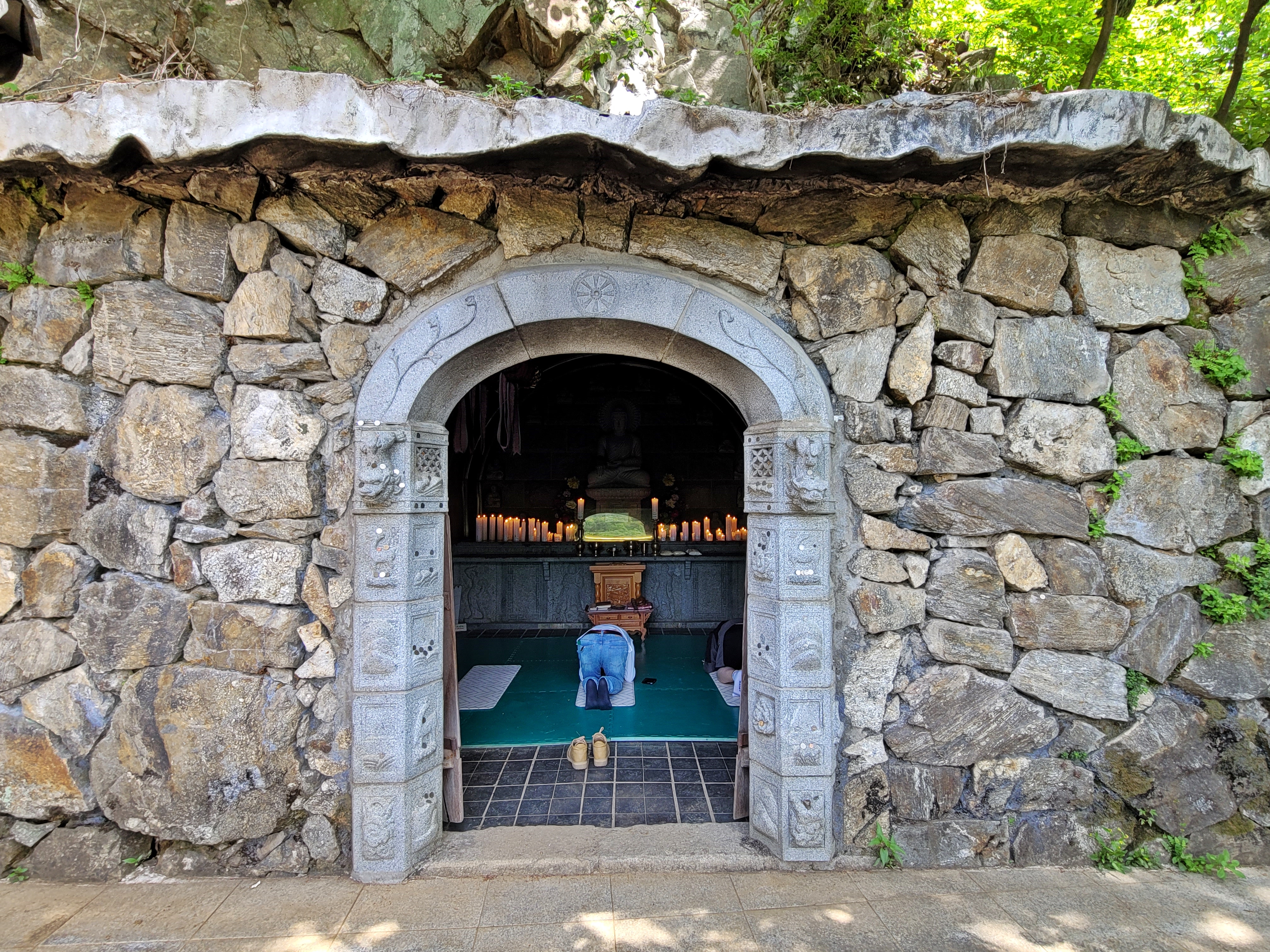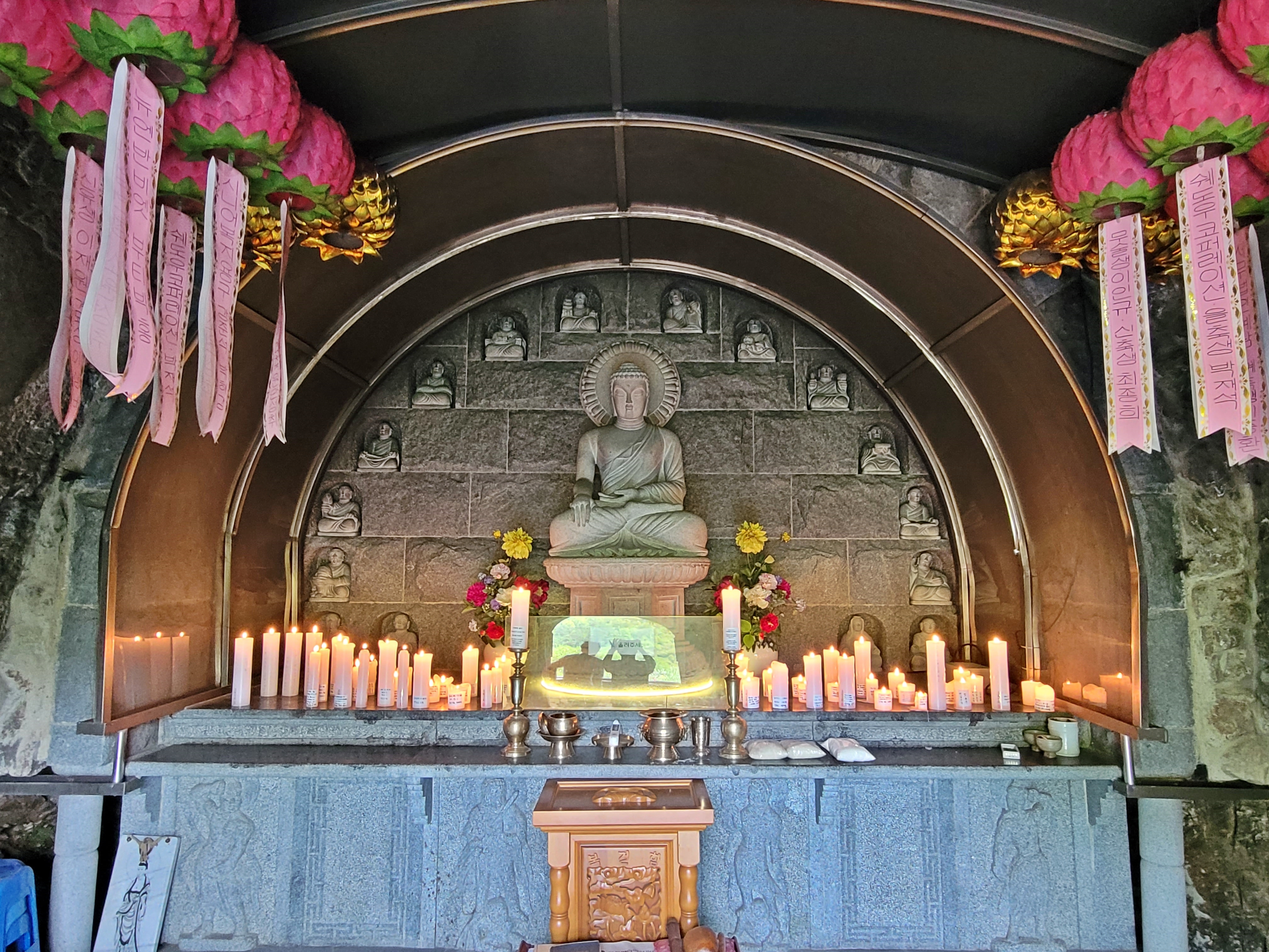 경주에만 석굴암이 있는 게 아니네요. 석굴암을 보니 불교 신자들이 안에서 절을 하며 기도하고 있었습니다. 신자들이 나간 후 들어가 보니 바위 안에 부처님을 모셨는데요, 아주 서늘하고 시원했습니다.