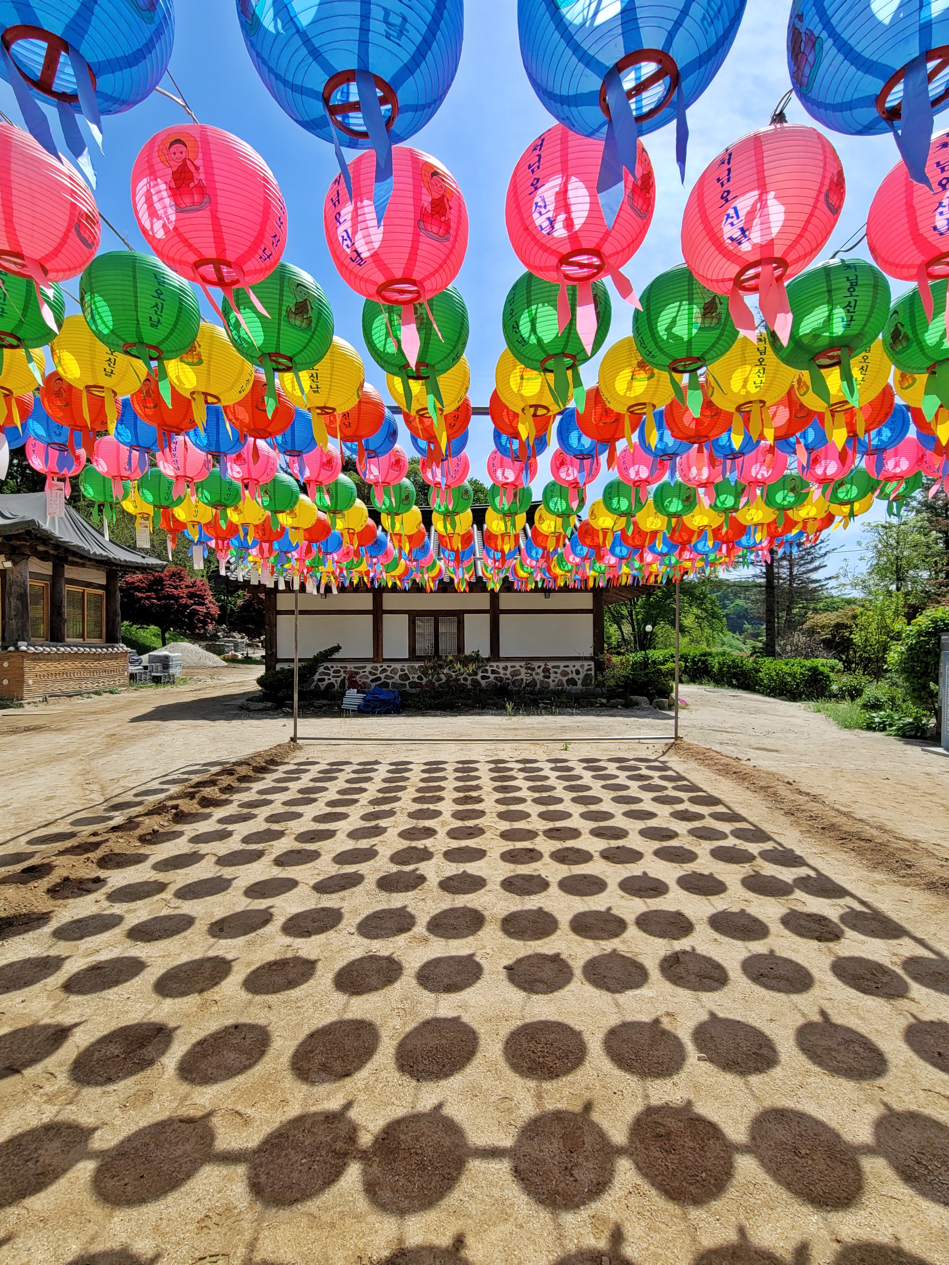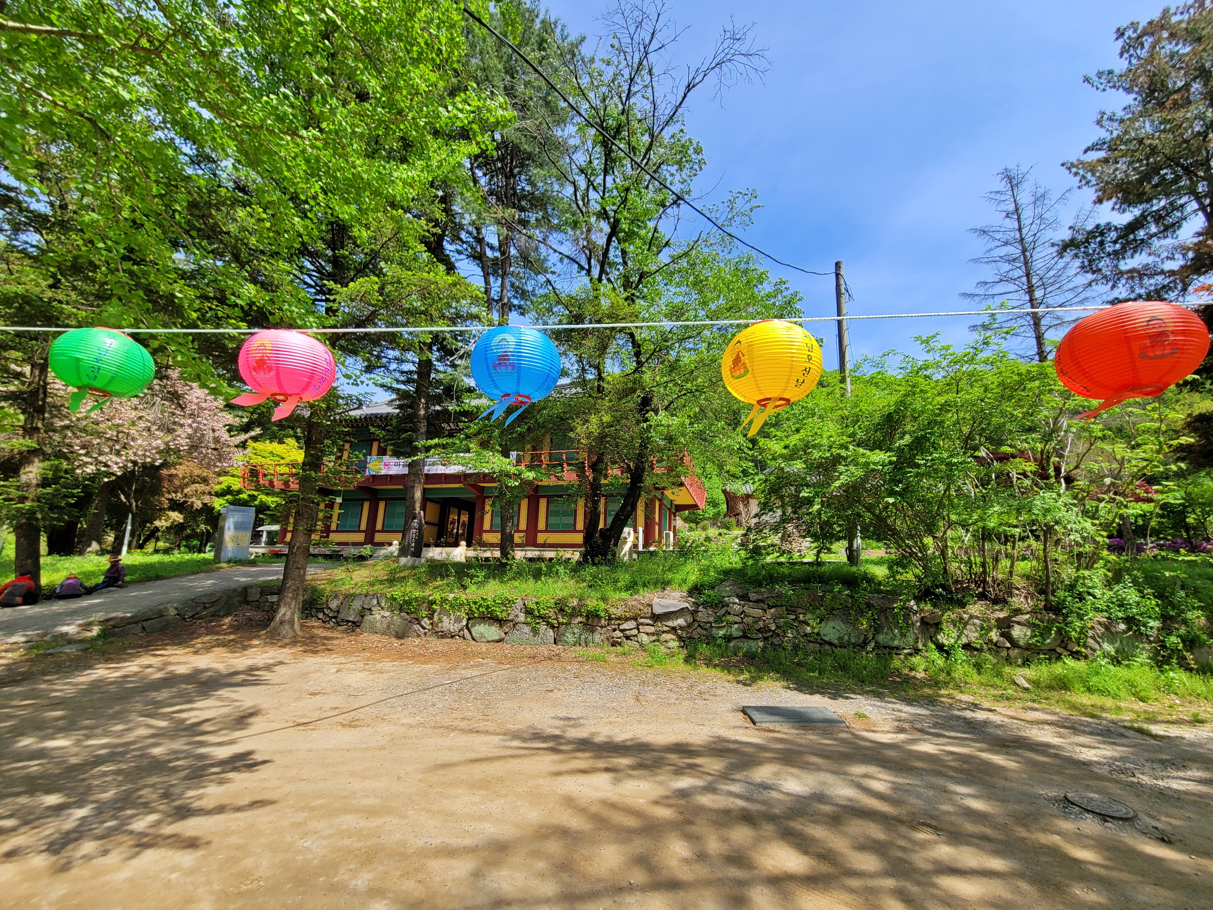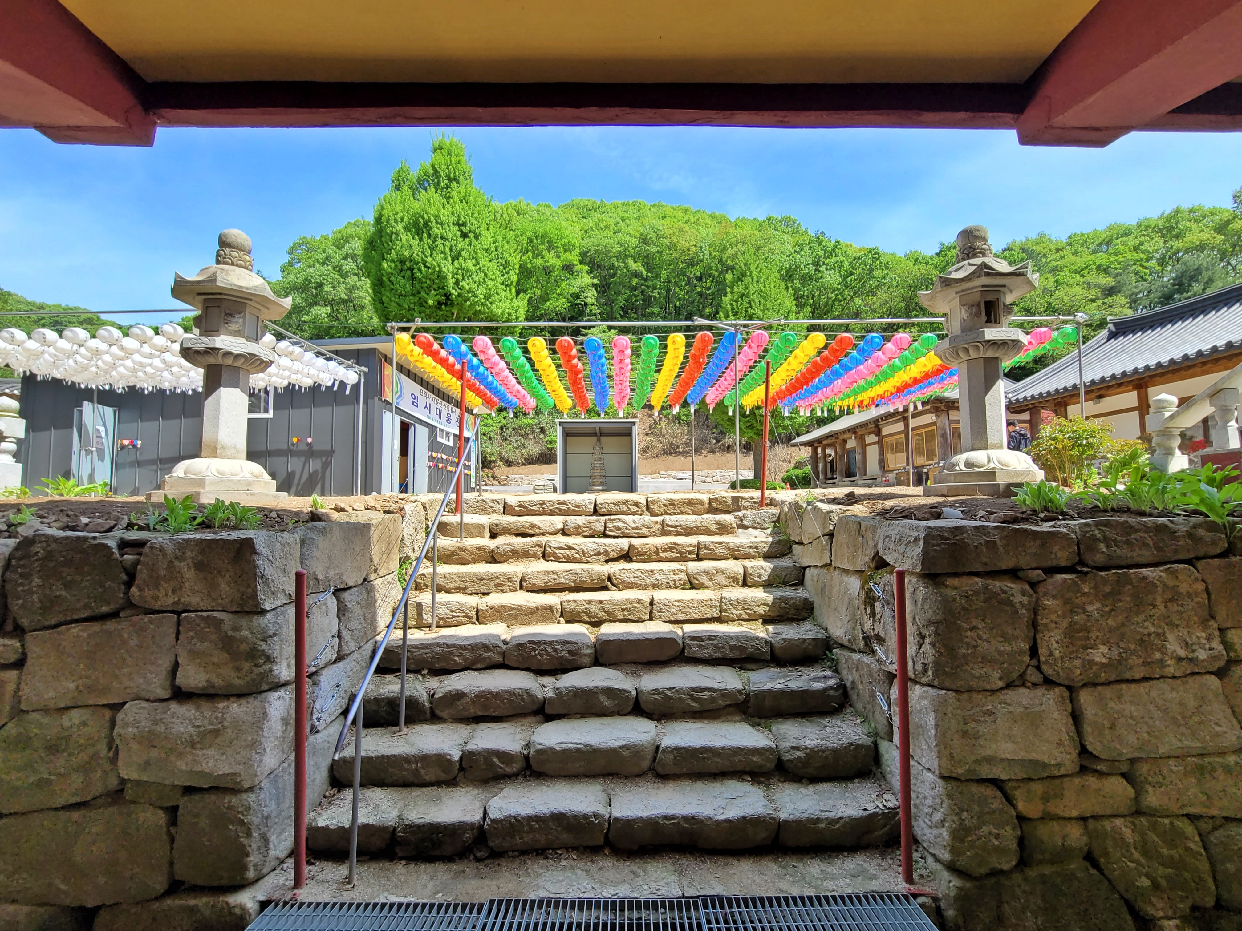 대웅전은 중건 중이지만, 경내에 오색 연등이 화려하게 걸려 있습니다. 연등 하나하나에 연등을 불사한 불자의 이름과 소원이 적혀 있습니다. 저는 연등 아래에서 대웅전이 무사히 중건되길 기원했습니다.