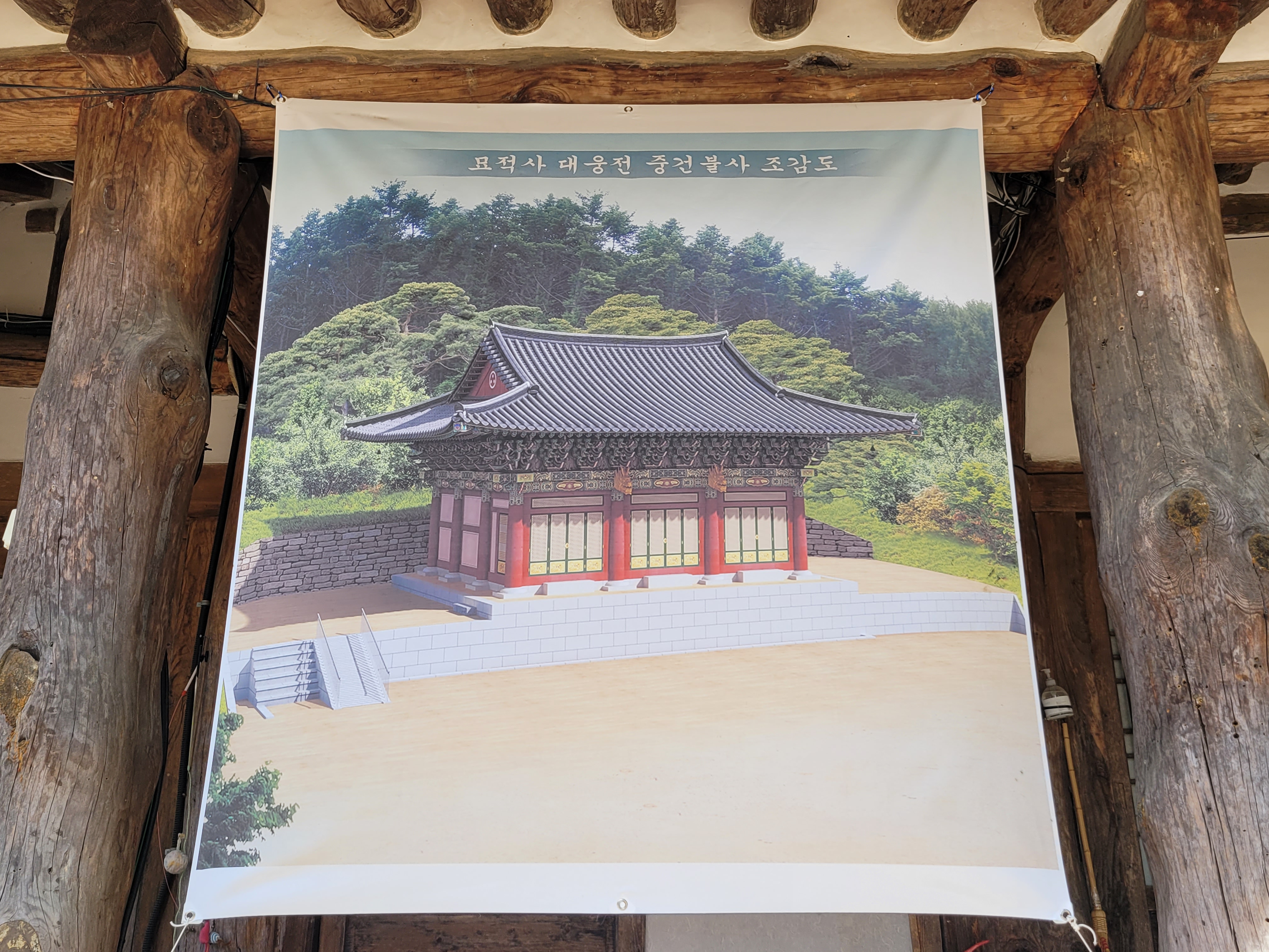 종무소에 대웅전 중건 불사 조감도가 걸려 있습니다. 아주 크고 웅장한데요, 언제 완공될지 모르지만, 천년고찰 묘적사의 대웅전으로 멋지게 준공되길 기대합니다.