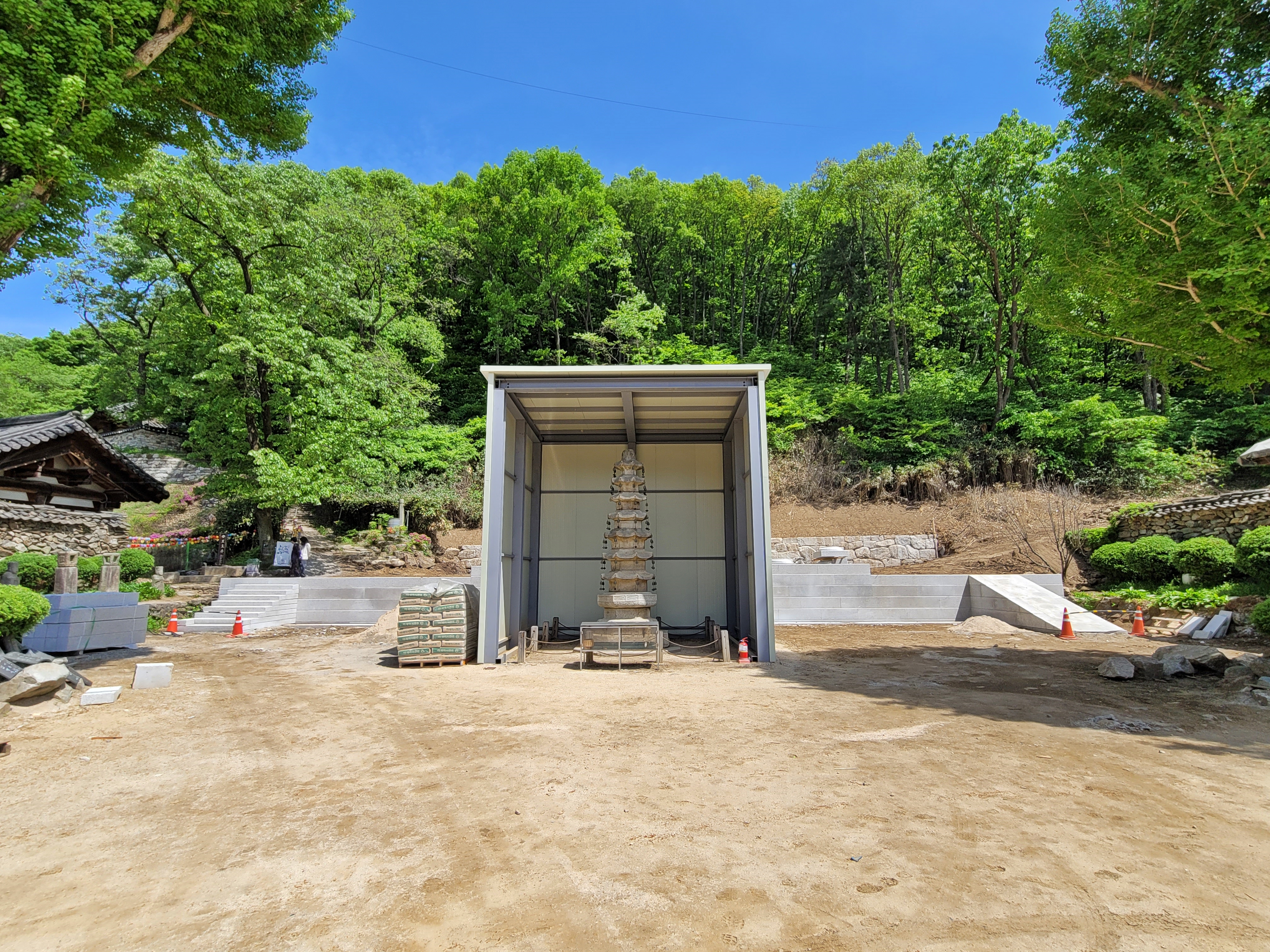 묘적사 경내로 올라가 보니 8각 다층석탑은 그대로 있는데, 그 뒤에 대웅전은 없습니다. 대웅전이 너무 오래돼 새로 짓기 위해 기단 작업을 하고 있었습니다.