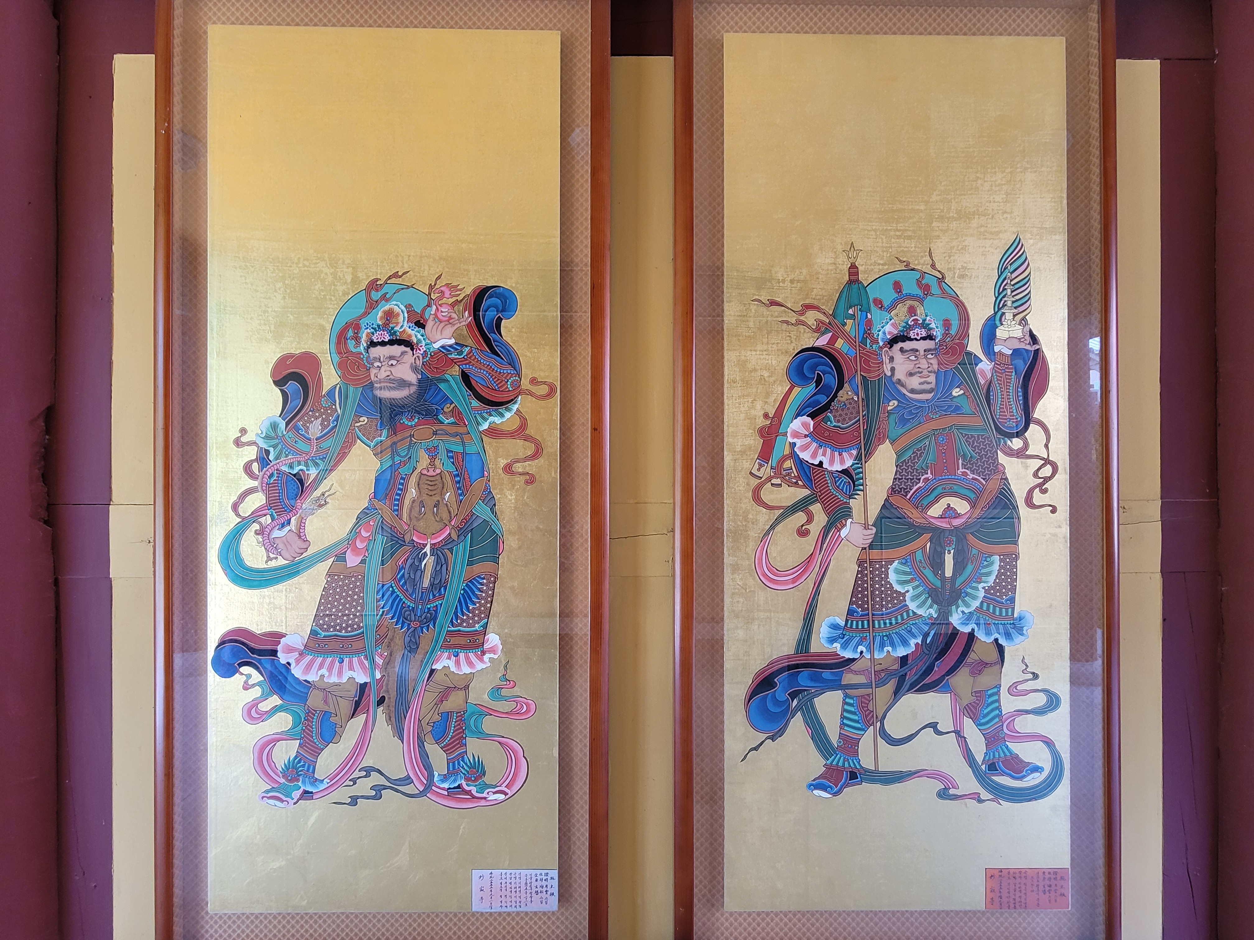 무영루를 지나는데 사천왕상 그림이 있습니다. 보통 사천왕문이 있고 그 문 안에 아주 무섭게 생긴 사천왕상이 있는데요, 사천왕상은 4명의 천왕이 지키고 있는 문입니다. 묘적사는 사천왕 대신에 그림으로 그려져 있습니다.