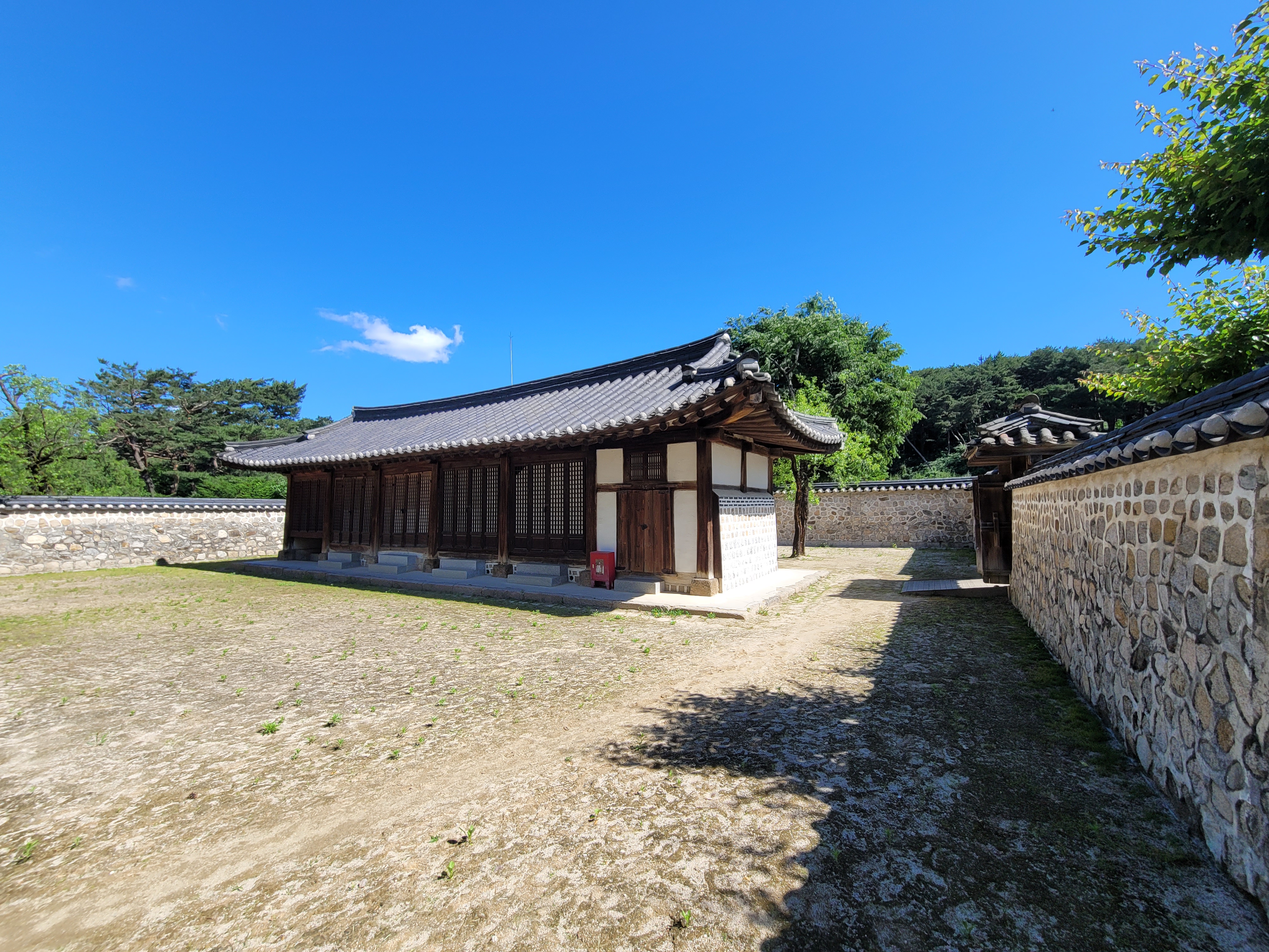 소나무 숲길 끝에 재실(齎室)이 있습니다. 재실은 제례(제사)를 준비하는 공간입니다. 안내판 설명을 보니 평상시에 능참봉(종9품)이 근무하며 능을 관리하며 지키는 장소입니다. 재실은 제사를 지내는 엄숙한 곳이라 단청하지 않았습니다.