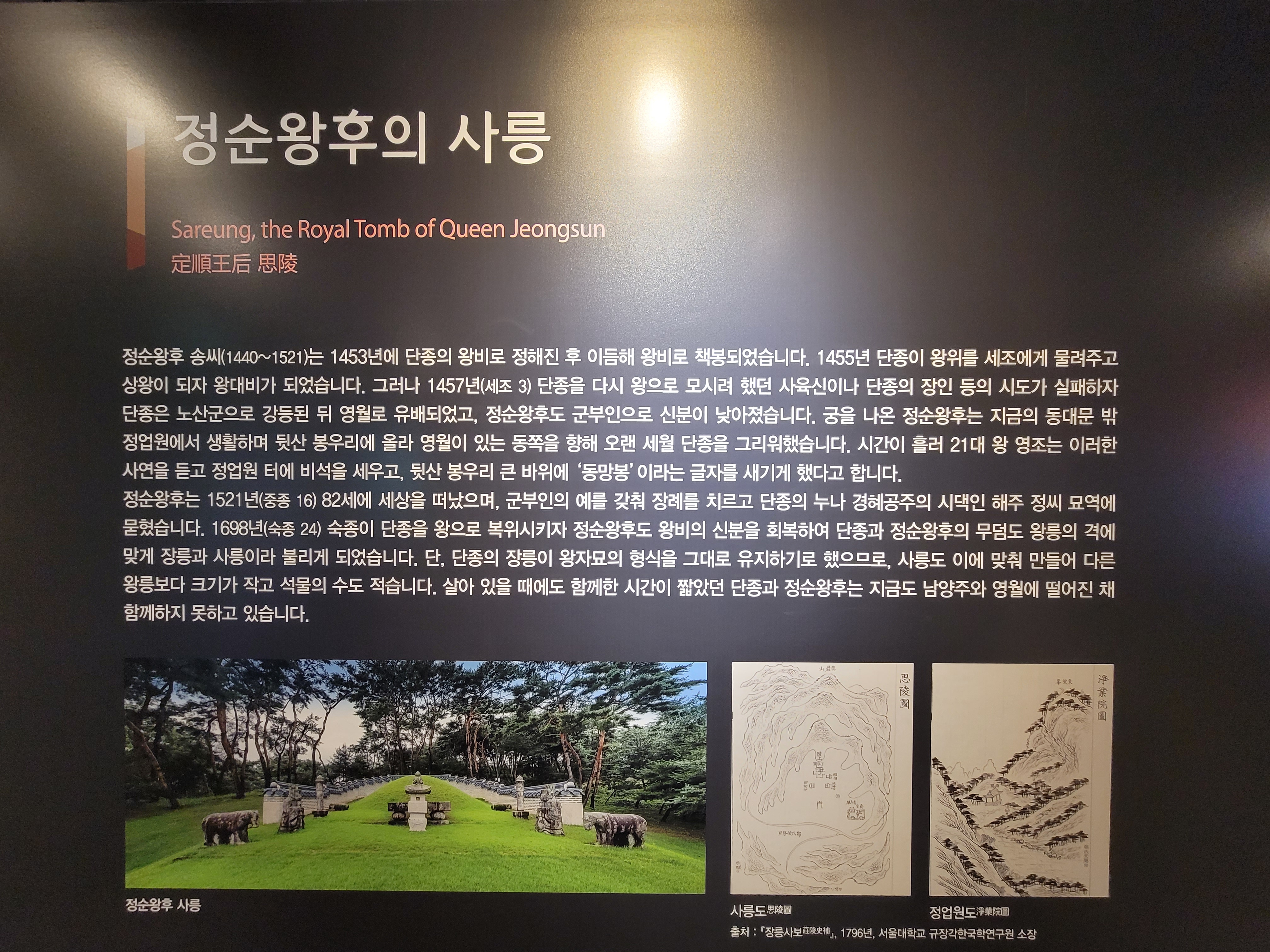 숲길을 나오면 사릉역사문화관이 있습니다. 규모가 크지는 않은데요, 단종을 향한 정순왕후의 그리움이 가득한 자료들이 있습니다. 사릉 방문 시 꼭 한번 들러보세요.