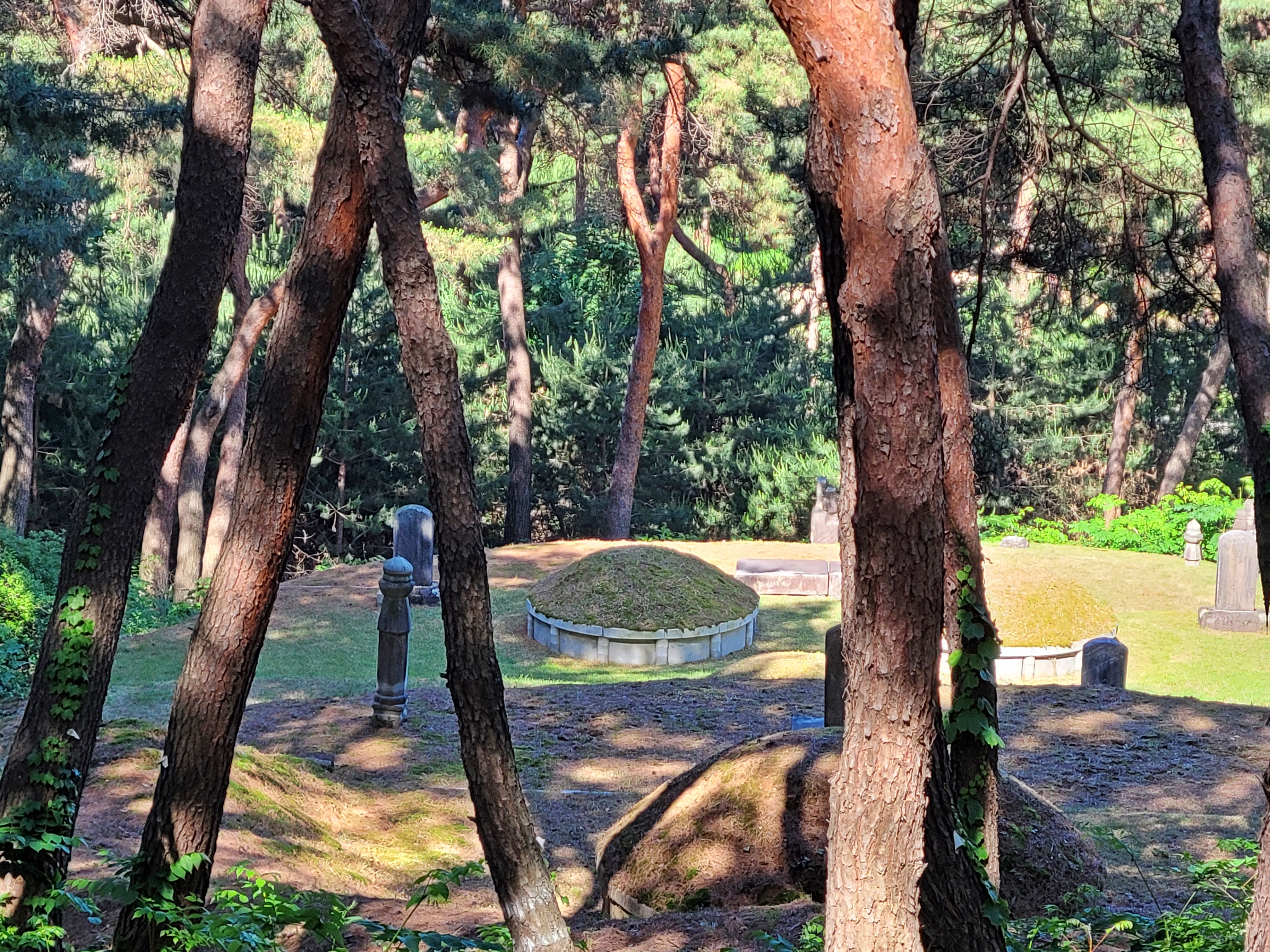 정순왕후는 단종이 일찍 승하해 슬하에 소생이 없습니다. 그래서 단종의 누이인 경혜공주가 경기도 양주 군의 시가(媤家) 묘역에 묘를 만들었습니다. 그래서 사릉 숲길 주변에 범상치 않은 무덤들이 많습니다. 사릉 뒷산은 해주 정씨 선산이라고 합니다.