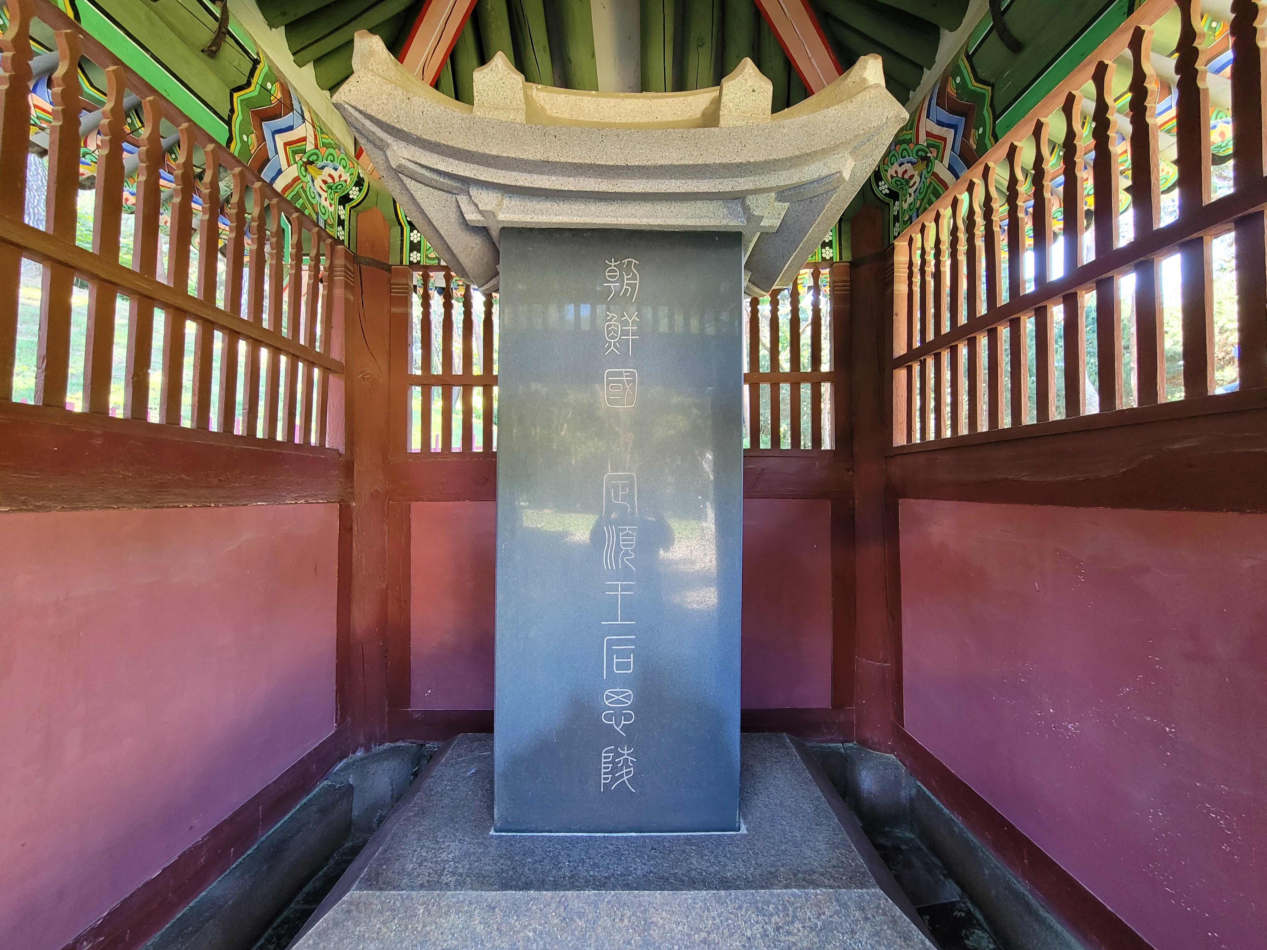 정자각 우측에 비각이 있습니다. 비각은 비석이나 신도비를 세워둔 곳입니다. 신도비는 능 주인의 업적을 기록한 비석입니다. 비문에는 한문으로 ‘朝鮮國 定順王后 思陵(조선국 정순왕후 사릉)’이라고 적혀 있습니다.