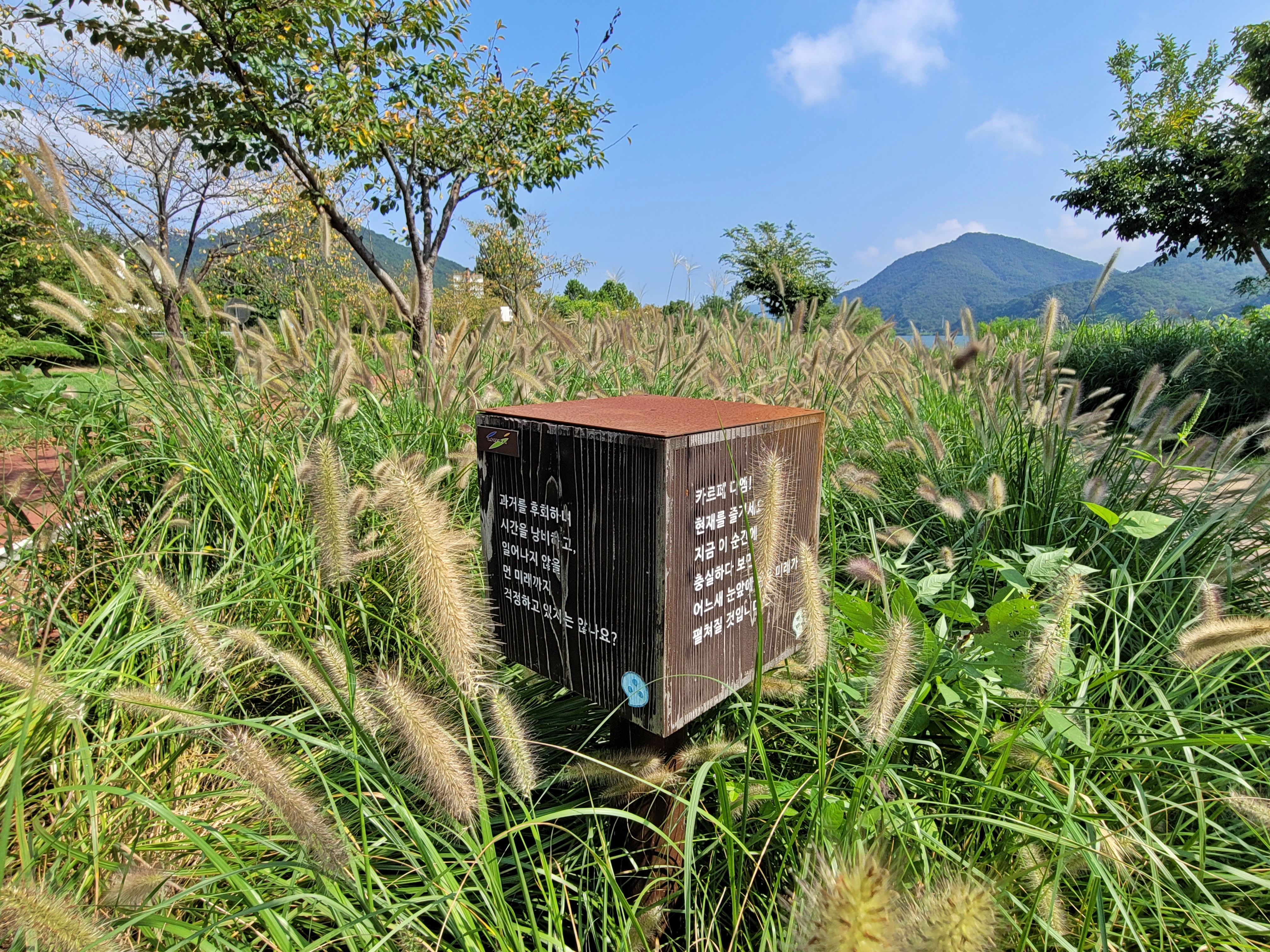 마음정원은 혼자 와도 심심하지 않아요. 곳곳에 화강암이나 나무를 이용해 명언 등을 써놓았는데요, 다산 정약용과 한음 이덕형 선생의 글도 많습니다. 저는 ‘카르페 디엠’ 현재를 즐기라는 말이 가장 마음에 와닿았어요. 지금, 이 순간에 충실하다 보면 어느새 눈앞에 밝은 미래가 펼쳐질 겁니다.