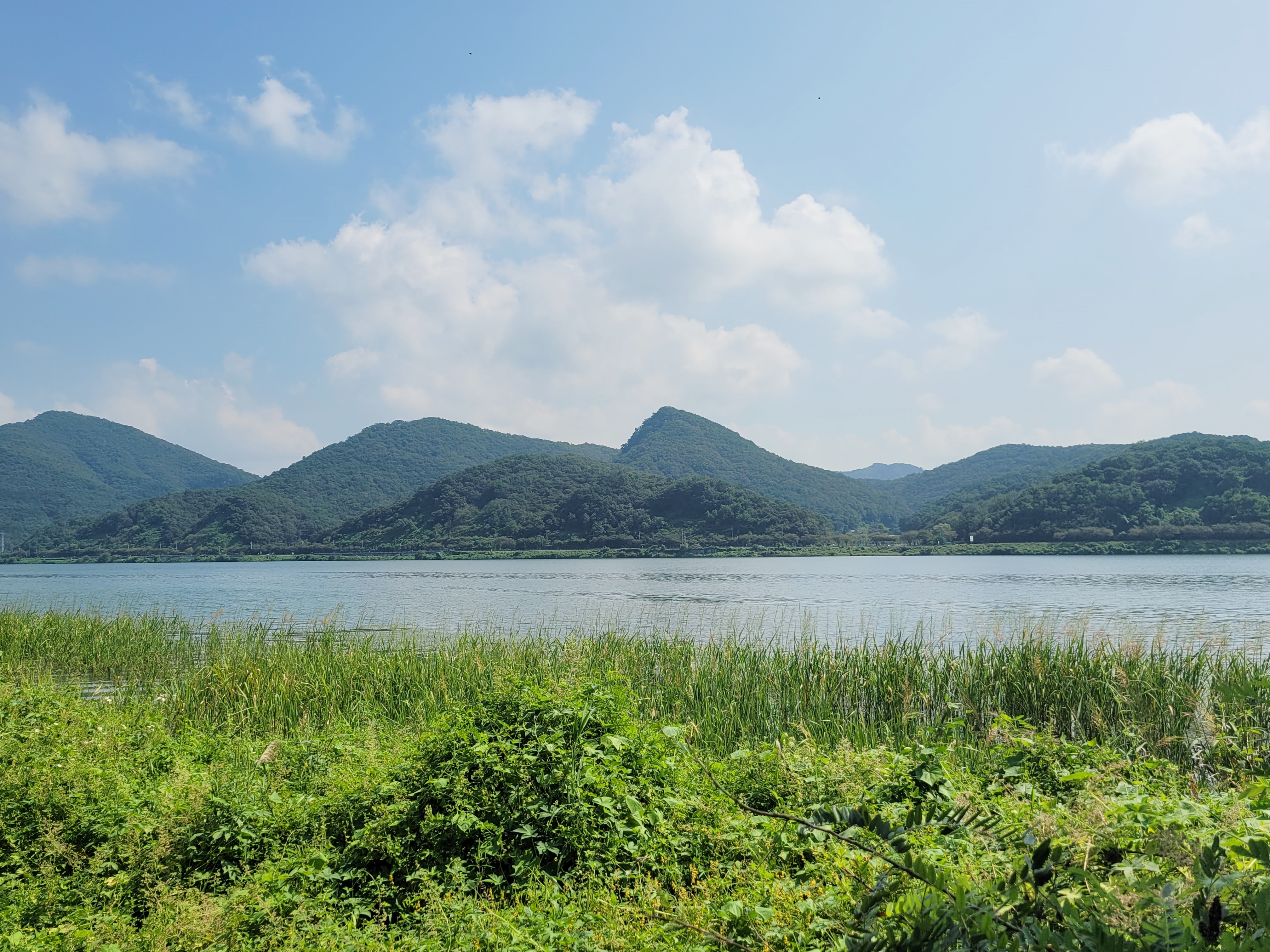 자전거길을 보니 나뭇잎이 많이 떨어져 있습니다. 강가라 그런지 아침저녁으로 서늘해서 금방 낙엽이 많이 쌓일 듯한데요, 그럼, 가을의 운치가 더해지겠죠.