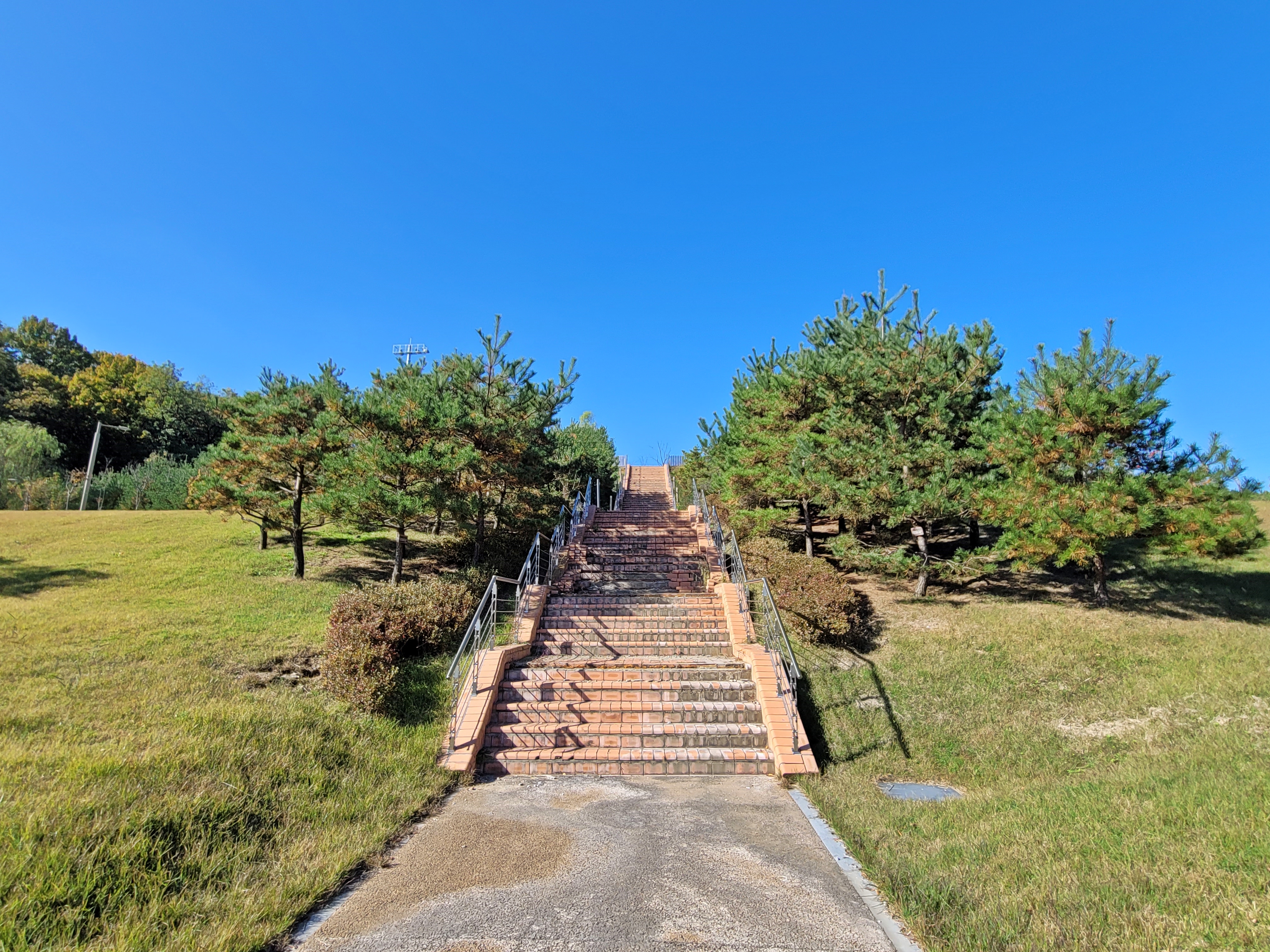 일패공원은 경사진 곳에 만든 공원이라 계단(2곳)을 오르내리며 저절로 운동이 됩니다. 계단을 뛰어오르며 운동하는 주민도 봤습니다. 계단 주변에 소나무가 있어 여름에는 그늘에 앉아 공원과 금곡동, 평내동을 조망하며 쉴 수 있는 곳이 되기도 하죠.