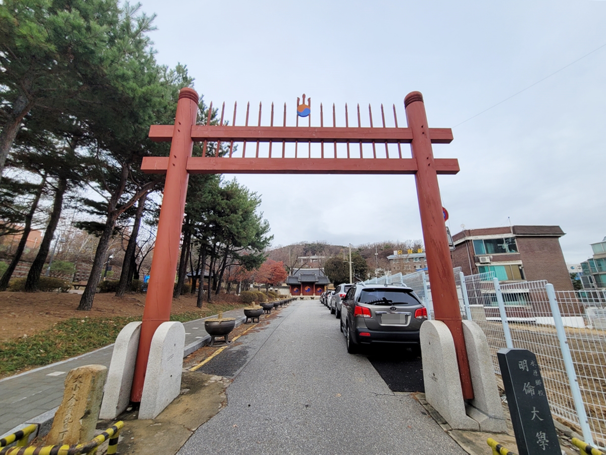 수원향교는 경기도 수원시 교동에 있습니다. 향교 입구에 홍살문이 있습니다. 홍살문은 붉은색을 칠한 나무 문인데요, 왕릉이나 서원, 향교 등에 세워져 있는 문인데요, 왜 수원향교에도 있을까요? 수원향교는 배움의 공간일 뿐만 아니라 선현들을 모신 곳이라 뭔가 신성시되는 장소를 보호하는 의미로 홍살문을 세운 것입니다.