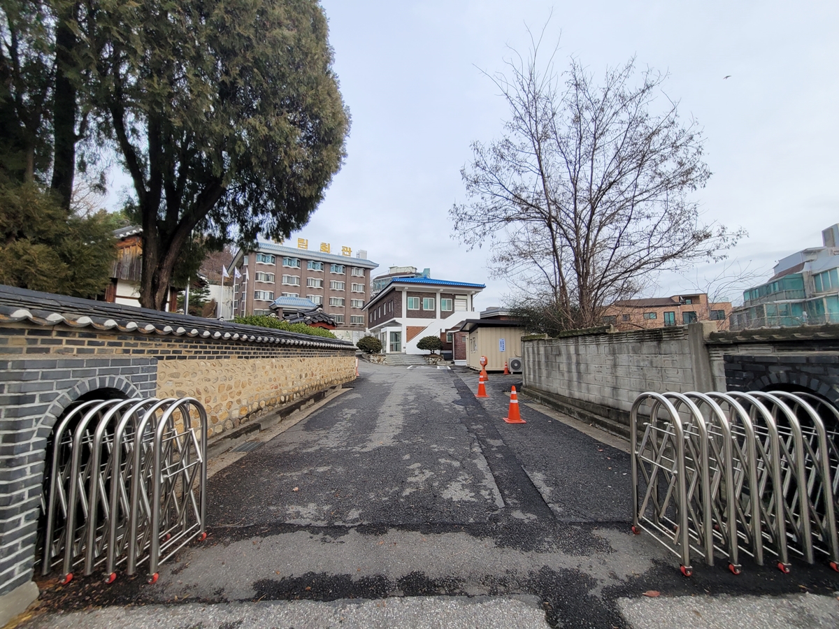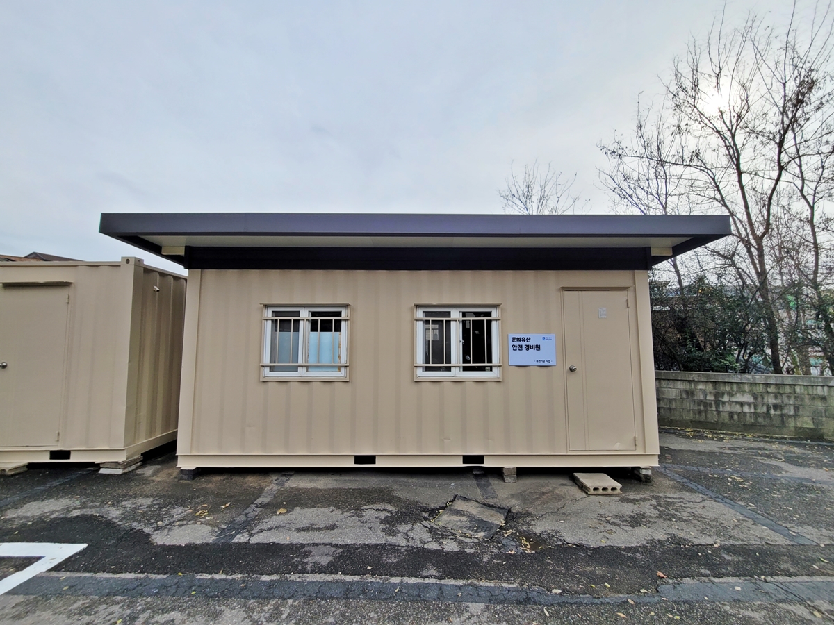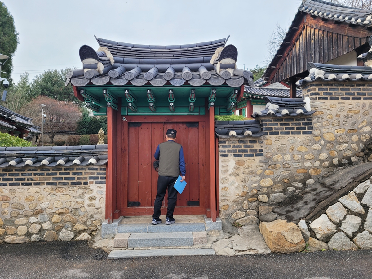 향교의 정문인 외삼문(外三門)은 닫혀 있습니다. 그래서 오른쪽으로 들어가야 하는데요, 향교 옆에 수원향교 사무처가 있습니다. 사무처 옆에 컨테이너 건물이 있는데요, 이곳에서 향교를 관람하러 왔다고 하면 문화유산 안전경비원이 문을 열어줍니다.