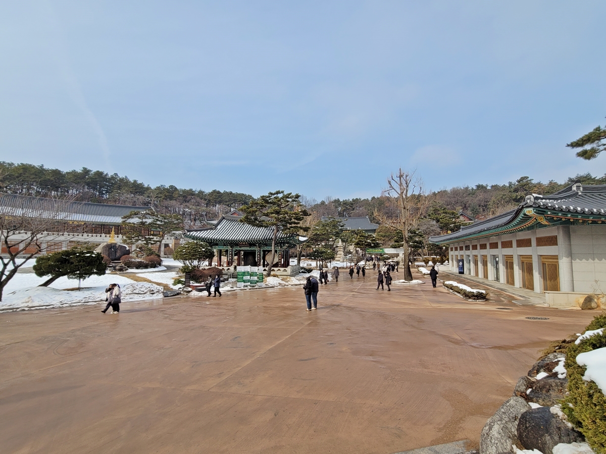 주차장에서 약 200m 걸어가면 사찰 경내가 한눈에 보입니다. 주말이라 그런지 방문객이 많았습니다. 전날 눈이 내려서 설경도 참 아름답습니다. 저는 1년에 봉녕사를 한두 번 꼭 오는데요, 설경은 처음입니다. 겨울이 가기 전에 오길 참 잘했습니다.