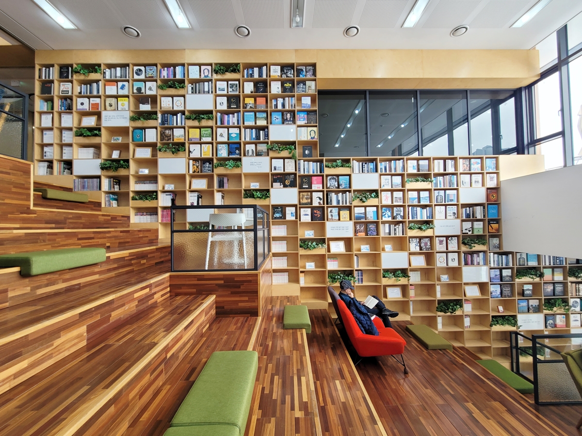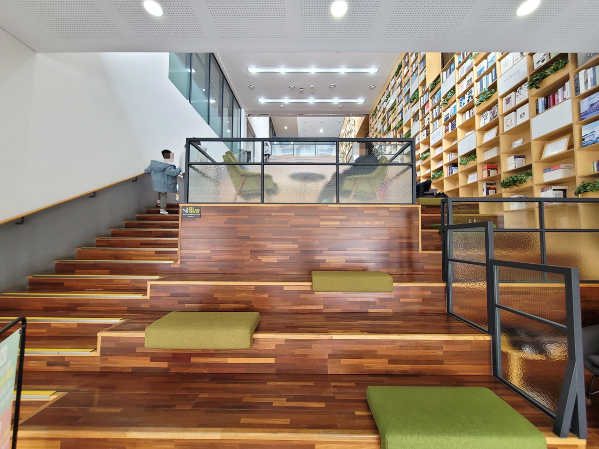 광교푸른숲도서관은 지하 1층, 지상 3층 등 총 4개 층인데요, 1층에 있는 다목적실을 보니 계단식으로 된 곳에서 책을 읽기 딱 좋습니다. 겨울에는 따뜻한 도서관에서 아이들과 책을 읽는 것도 좋은 나들이 중의 하나겠죠.