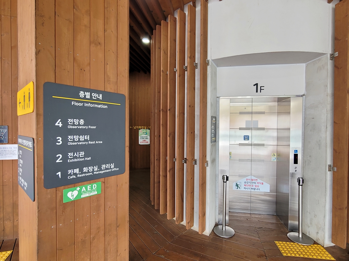 저는 계단을 따라 올라가 봅니다. 계단은 나선형으로 되어 있어서 그리 가파르지 않습니다. 엘리베이터를 타고 가면 한 번에 전망대까지 오르지만, 계단을 따라 가면 한층 한층 올라가는 기분으로 색다른 광교호수공원 전망을 볼 수 있습니다. 계단을 오를 때는 미끄러지지 않도록 조심하셔야 합니다.