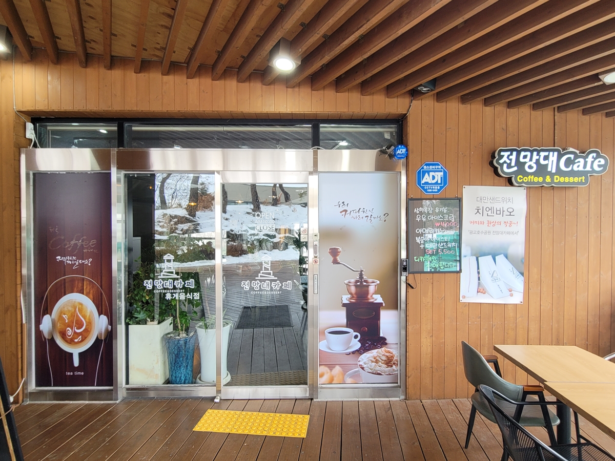 전망대 1층에 카페가 있는데요, 아름다운 호수를 배경으로 커피 한 잔의 여유를 즐길 수 있습니다. 카페에서 따뜻한 아메리카노와 샌드위치 등을 판매해 가족이나 친구, 연인과 함께 왔을 때 들르기 좋은 카페입니다.