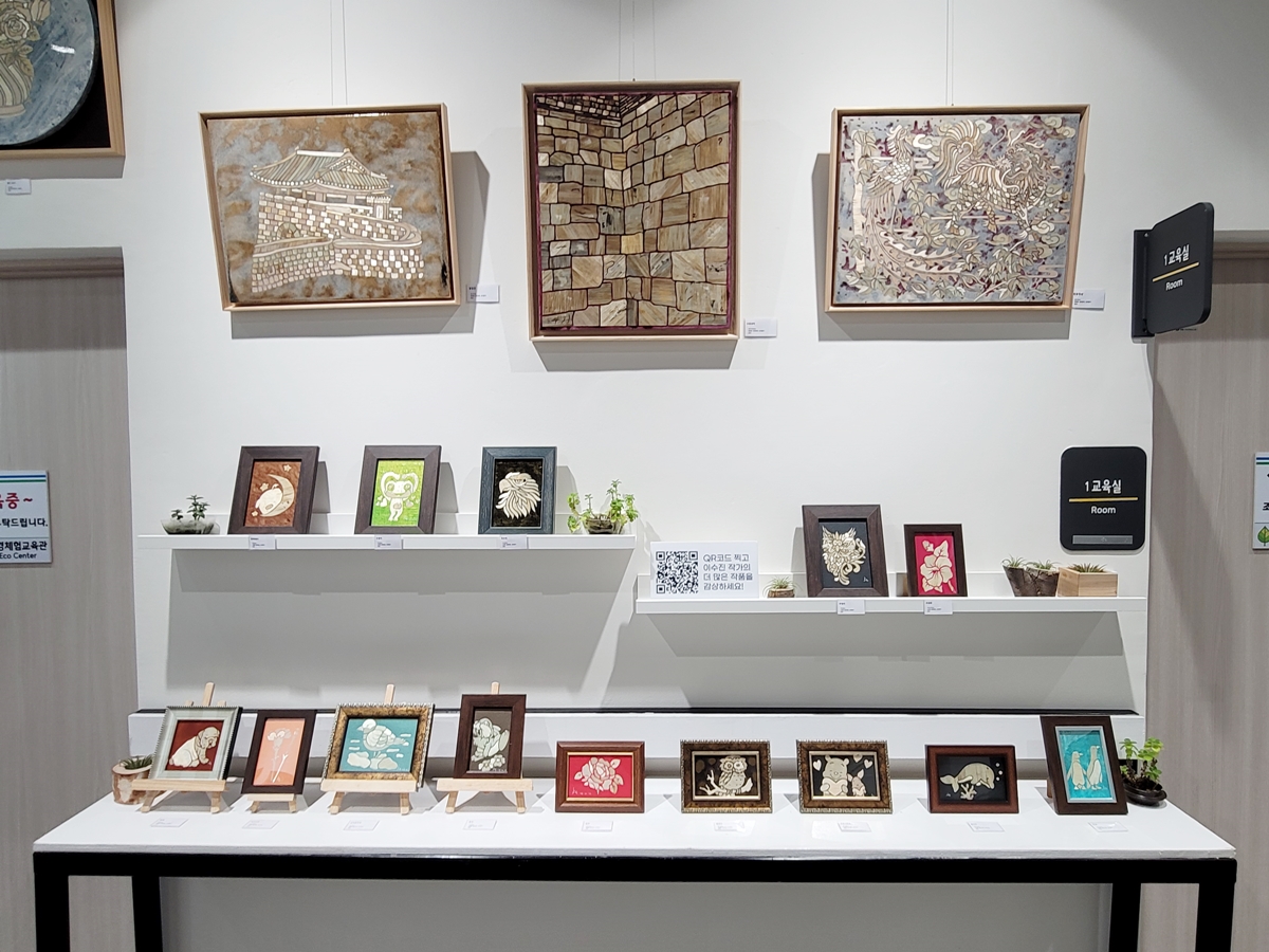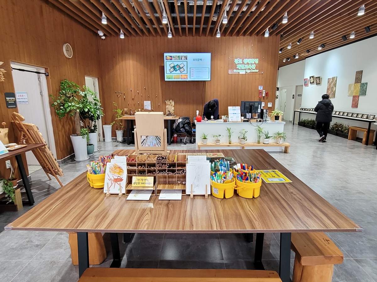 전망대 아래 계단으로 내려가면 교육관이 나오는데요, 이곳은 전시홀과 생태체험관 등 환경 교육이 이루어지고 있습니다. 전시는 보리 아트 명인 이수진 작가전이 12월 31일까지 열리고 있는데요, 보리로 만든 다양한 작품을 만나볼 수 있습니다.