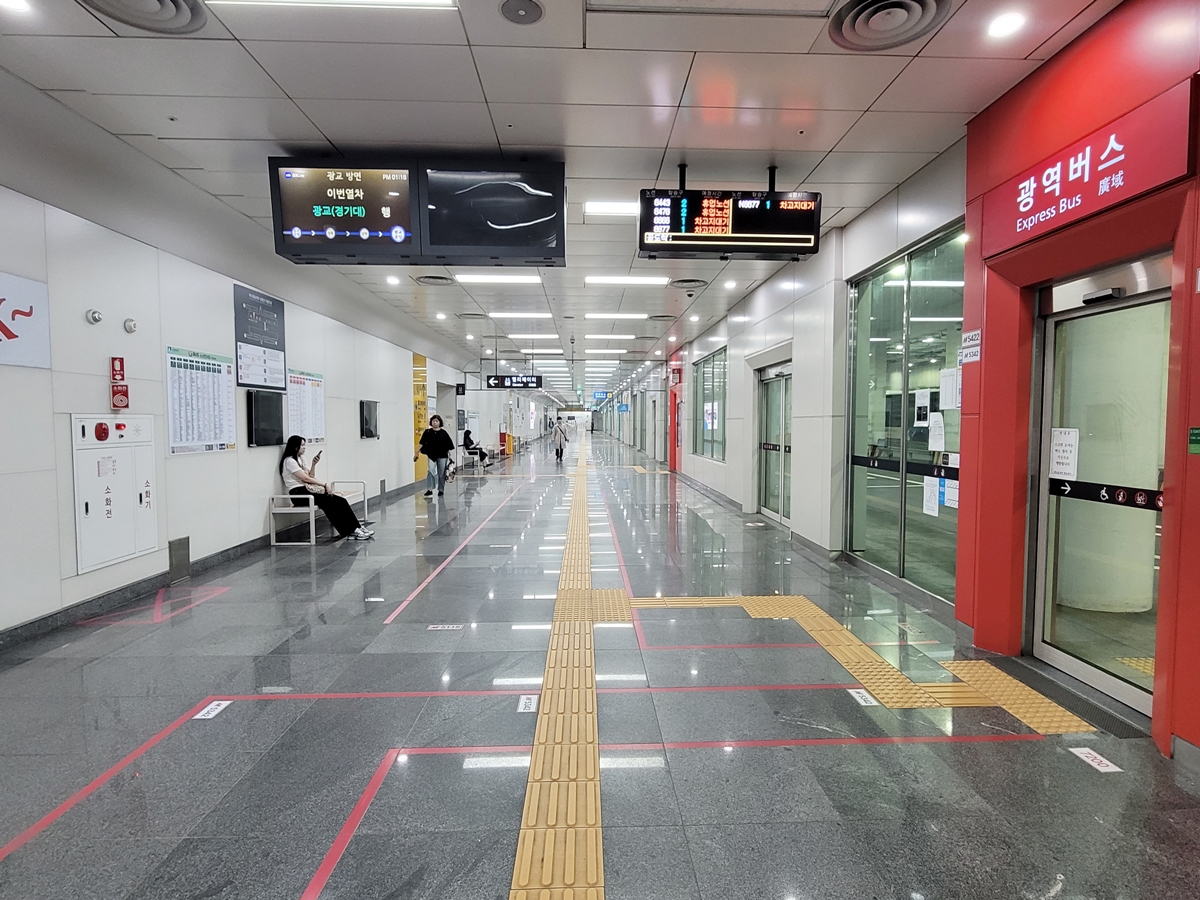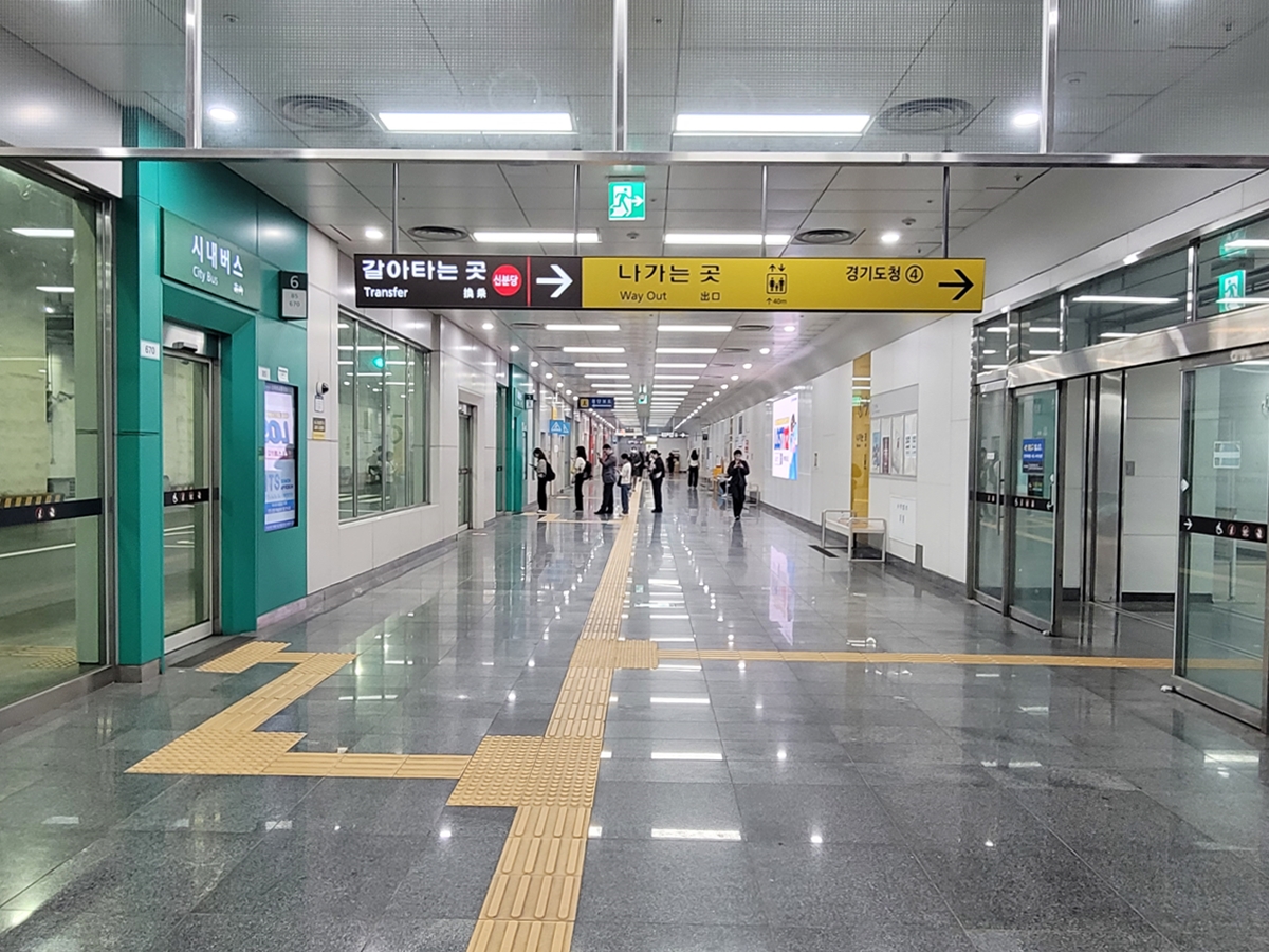 버스환승센터는 긴 ‘ㅡ’자형입니다. 이곳은 시내버스, 광역버스, 마을버스, 공항버스 등을 탈 수 있고 시민들이 편리하게 이용하도록 색깔별로 승차장을 만들었습니다. 반대 방향으로 가지 않고 버스를 타도록 타기 전에 꼭 노선도를 확인해야 합니다.