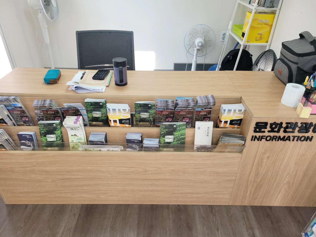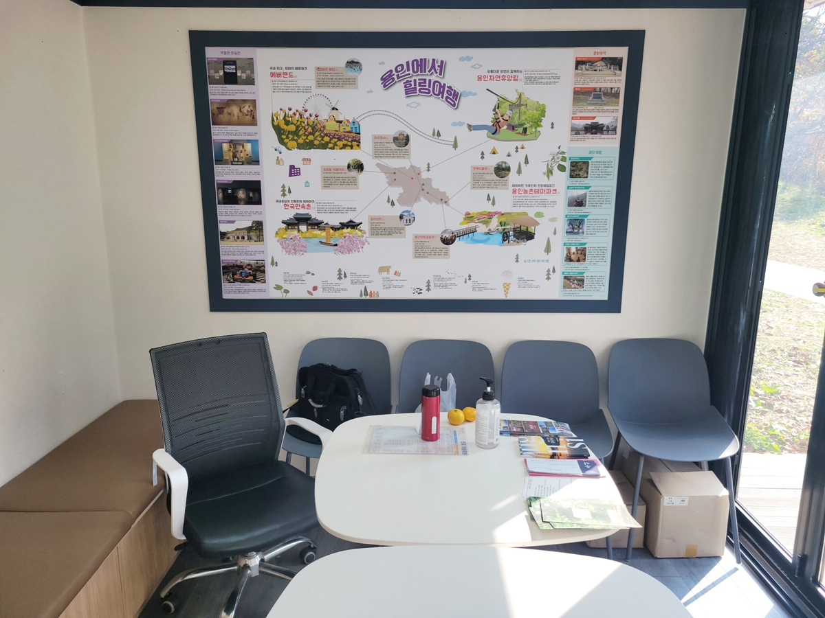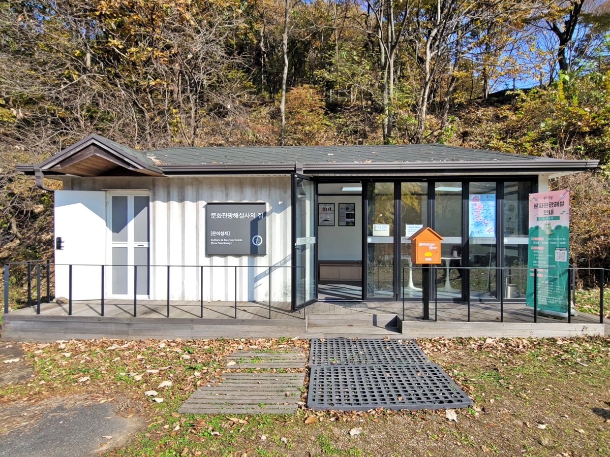 은이성지 맞은 편에 있는 '문화관광해설사의 집을 잠깐 방문했습니다. 이 건물은 성지 방문객들을 위한 안내소이자 쉼터 역할을 톡톡히 하고 있었습니다. 안에는 방문객들이 잠시 쉬어갈 수 있는 테이블과 의자, 용인관광 팸플릿 등이 마련되어 있습니다.