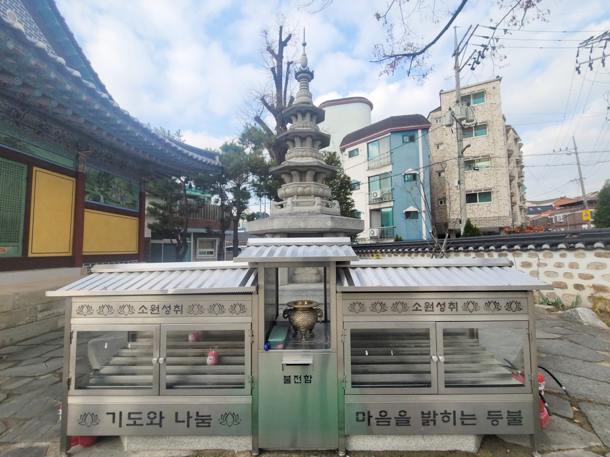극락대원전은 사찰의 중심 법당으로, 이곳에서 부처님을 모시고 예불 및 각종 법회가 이루어집니다. 전통적인 양식과 단정한 모습이 도심 사찰의 기품을 보여줍니다. 제가 갔던 날 법회가 이루어지고 있어 안에는 촬영하지 못했습니다.