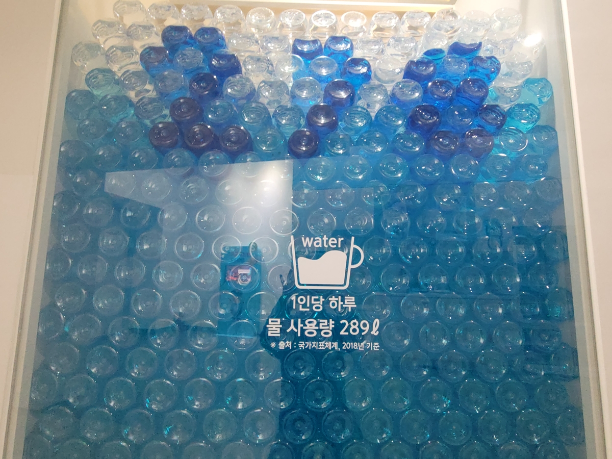 우리가 1인당 하루에 사용하는 물은 얼마나 될까요? 289리터라고 합니다. 우리가 하루에 얼마나 많은 물(평균 약 280리터)을 사용하고 있는지 시각적으로 보여주고, 샤워 시간 줄이기, 양치컵 사용 등 생활 속 물 절약 실천 방법을 교육합니다.